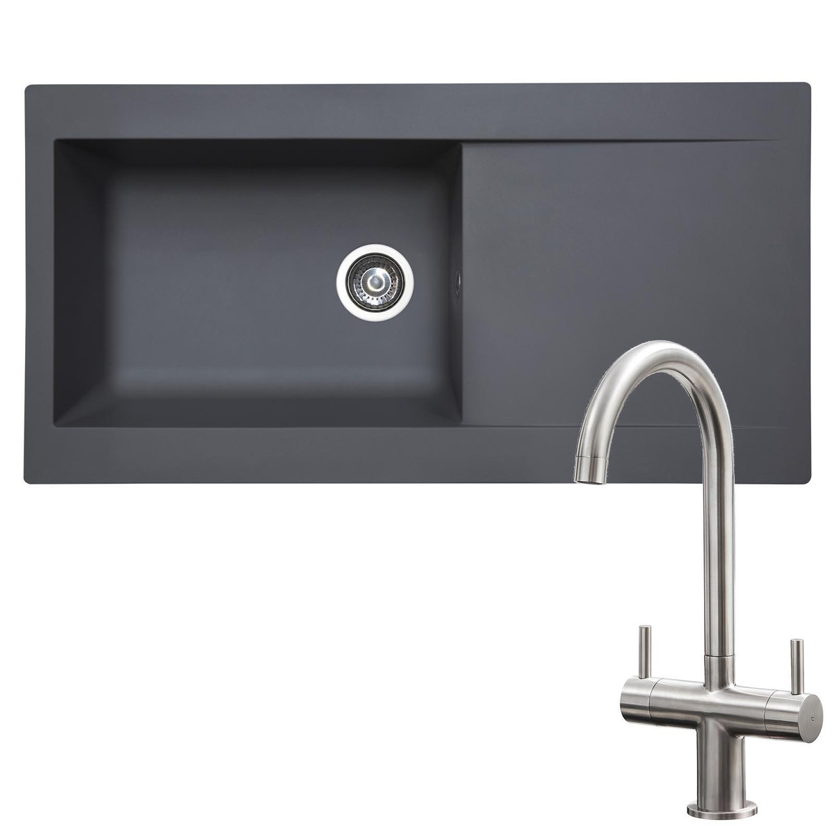 If you are looking for a durable, hard-wearing kitchen sink without the expensive price tag then the DELTA10GR is the product for you. Manufactured from a strong fibreglass composite this product is resistant to heat, stains and scratches, making it the perfect choice for any household. The sink features a single large bowl with a huge 29L capacity which would be useful in any type of kitchen or utility room. This package includes the KT3BN, a twin lever mixer tap with a stylish brushed finish that complements the sink perfectly.