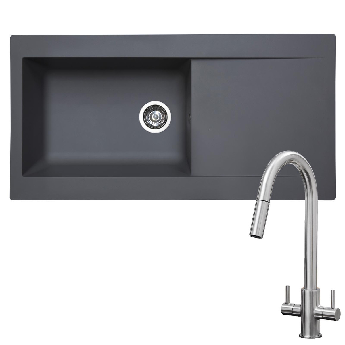 SIA DELTA10GR 1.0 Bowl Grey Composite Reversible Inset Kitchen Sink & Waste Kit