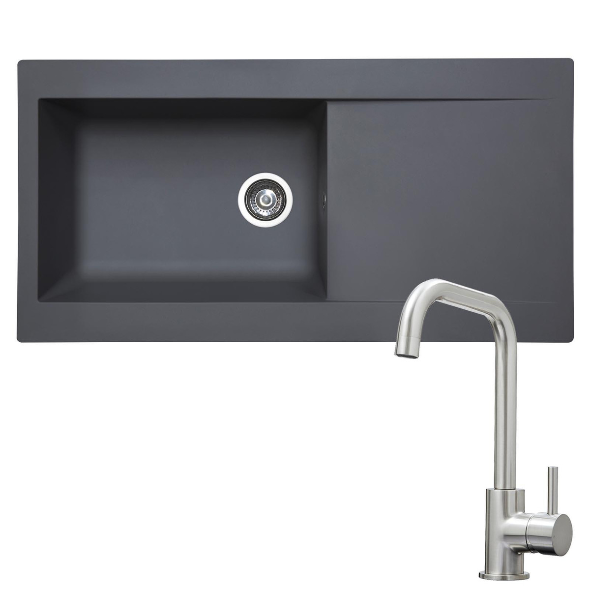 SIA DELTA10GR 1.0 Bowl Grey Composite Reversible Inset Kitchen Sink & Waste Kit