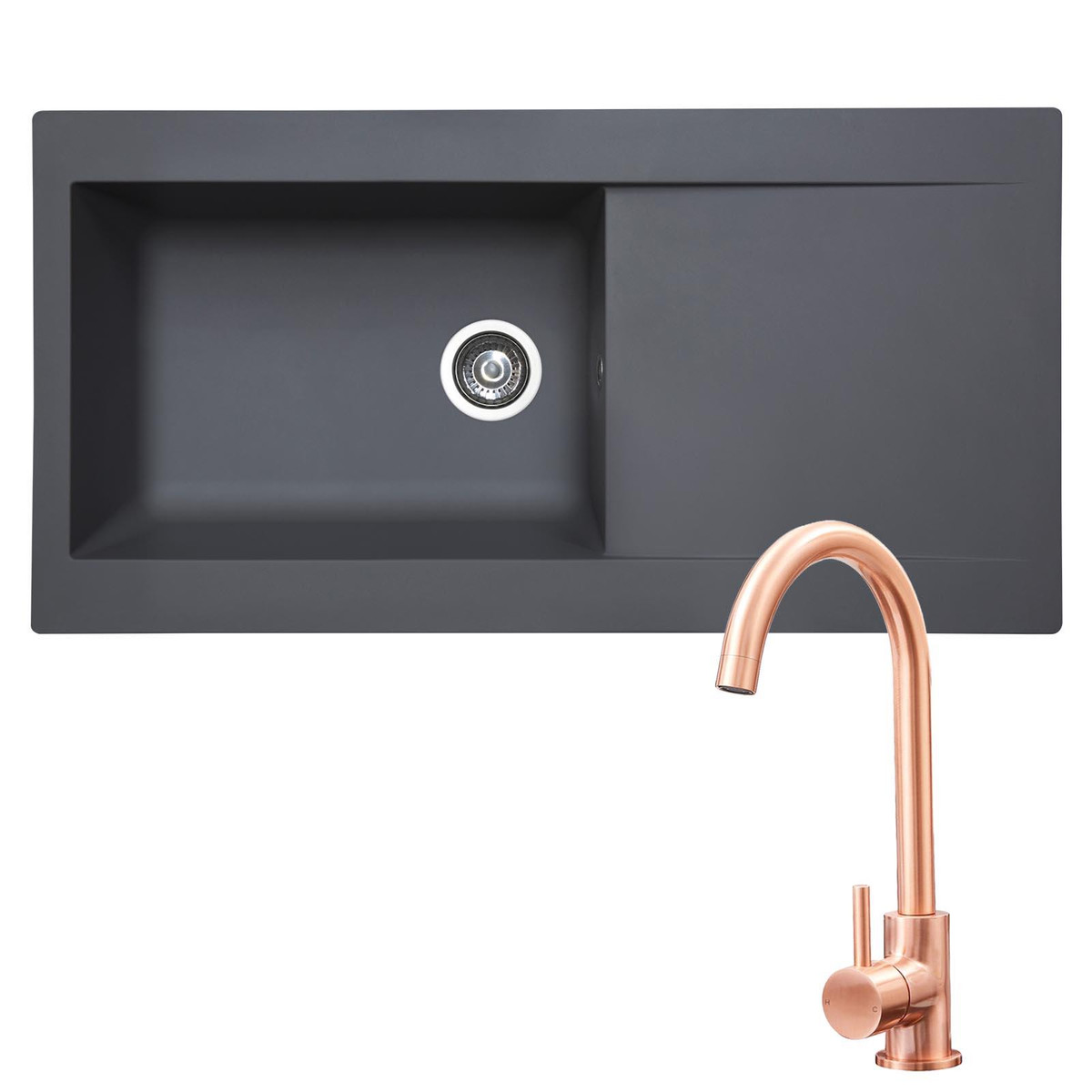 If you are looking for a durable, hard-wearing kitchen sink without the expensive price tag then the DELTA10GR is the product for you. Manufactured from a strong fibreglass composite this product is resistant to heat, stains and scratches, making it the perfect choice for any household. The sink features a single large bowl with a huge 29L capacity which would be useful in any type of kitchen or utility room. The sink is complemented by the SIA KT6CU, a single lever monobloc kitchen mixer tap with a modern design and a copper finish that will add a contemporary look to any kitchen.