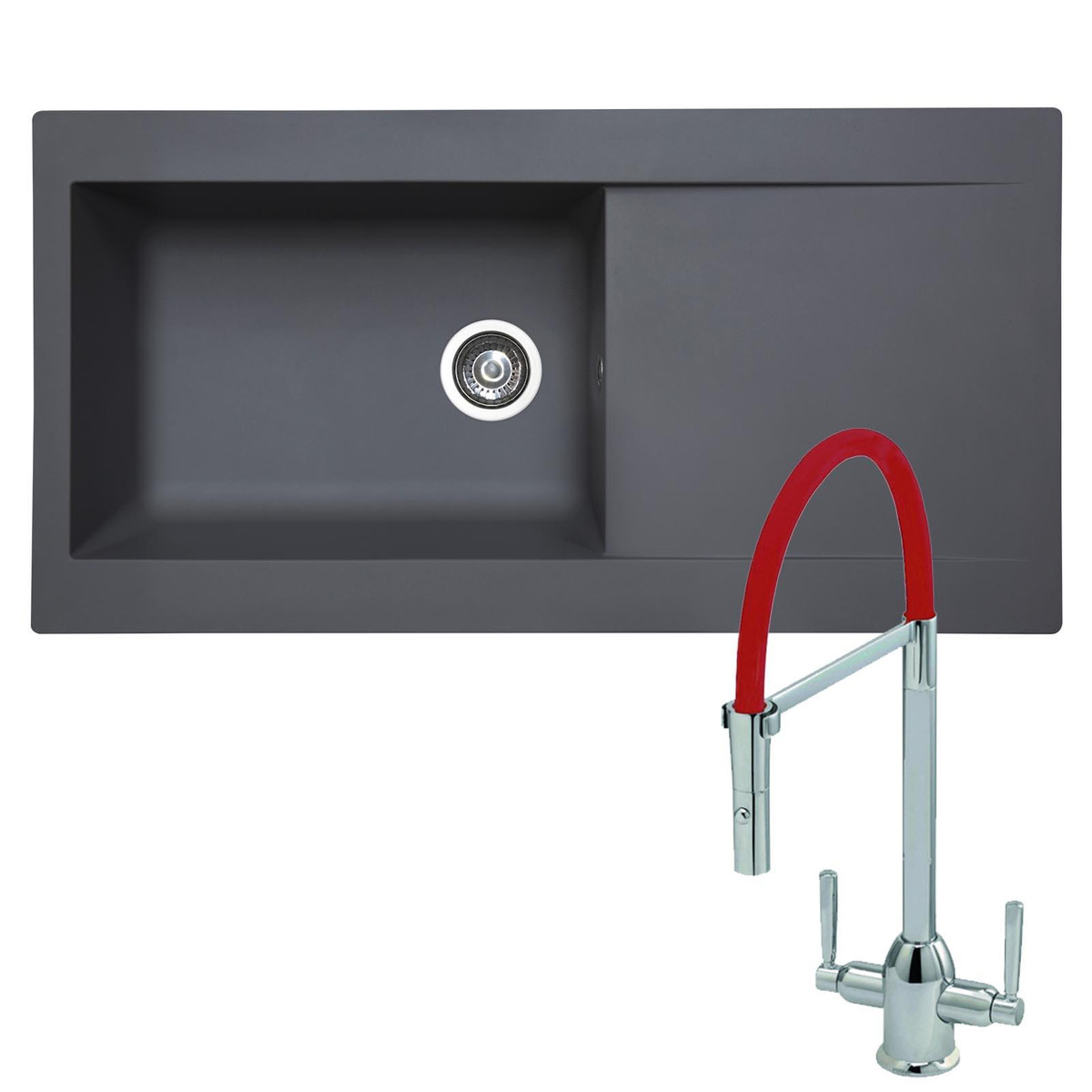 If you are looking for a durable, hard-wearing kitchen sink without the expensive price tag then the DELTA10GR is the product for you. Manufactured from a strong fibreglass composite this product is resistant to heat, stains and scratches, making it the perfect choice for any household. The sink features a single large bowl with a huge 29L capacity which would be useful in any type of kitchen or utility room. The sink is complemented by the Carron Phoenix Dante, a chrome mixer tap with a vibrant red silicone hose that will add a splash of colour to any kitchen.
