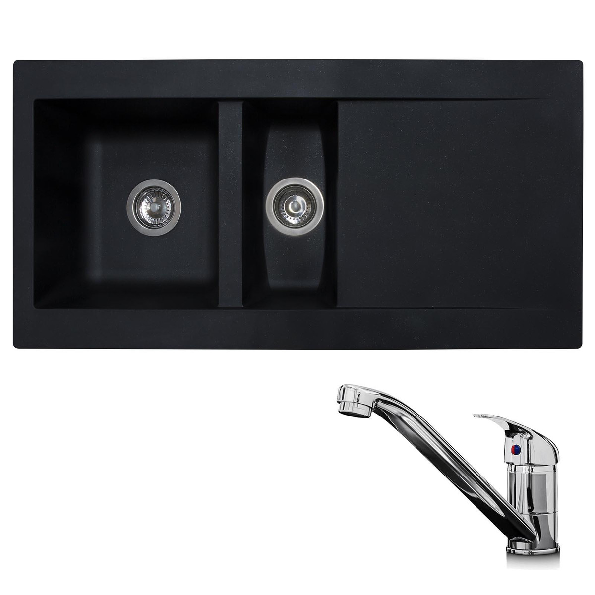 SIA DELTA15BL 1.5 Bowl Black Composite Reversible Inset Kitchen Sink & Waste Kit