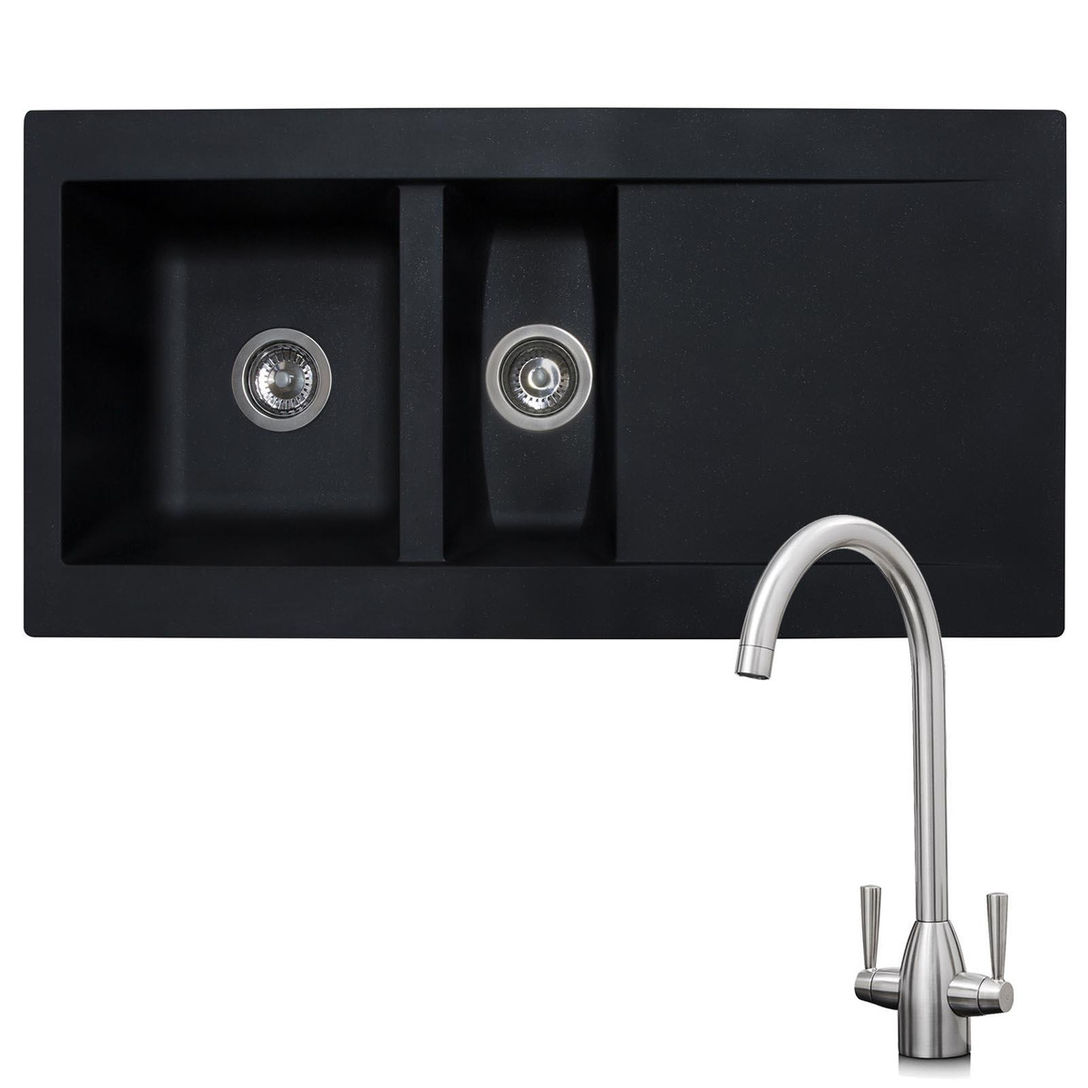 SIA DELTA15BL 1.5 Bowl Black Composite Reversible Inset Kitchen Sink & Waste Kit