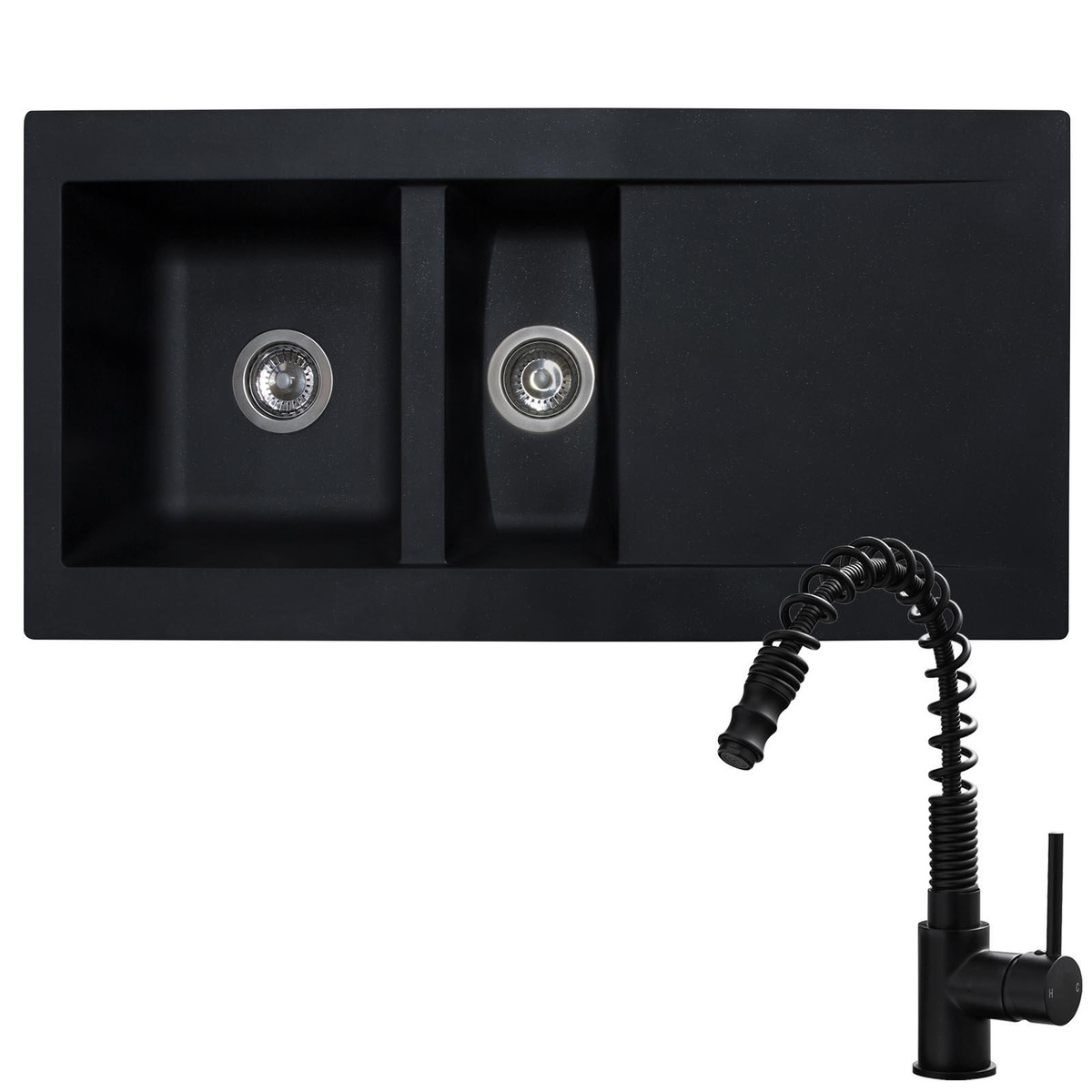 SIA DELTA15BL 1.5 Bowl Black Composite Reversible Inset Kitchen Sink & Waste Kit