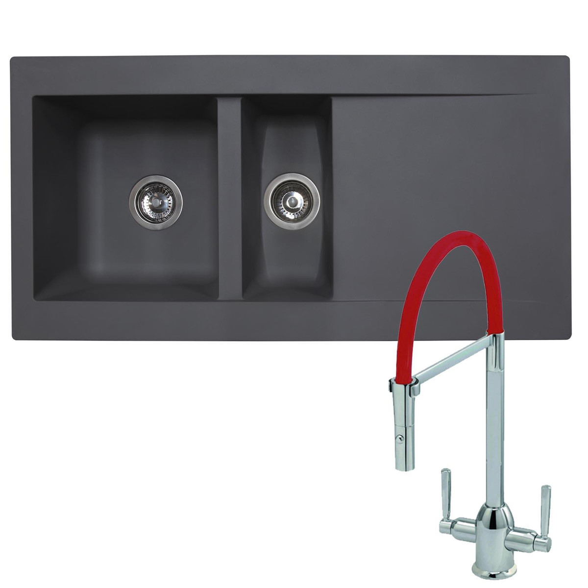 If you are looking for a durable, hard-wearing kitchen sink without the expensive price tag then the DELTA15GR is the product for you. Manufactured from a strong fibreglass composite this product is resistant to heat, stains and scratches, making it the perfect choice for any household. The main bowl has a 20L capacity which is perfect for the washing up, whilst the half bowl lets you use the sink for multiple purposes when the main bowl is in use. The sink is complemented by the Carron Phoenix Dante, a chrome mixer tap with a vibrant red silicone hose that will add a splash of colour to any kitchen.