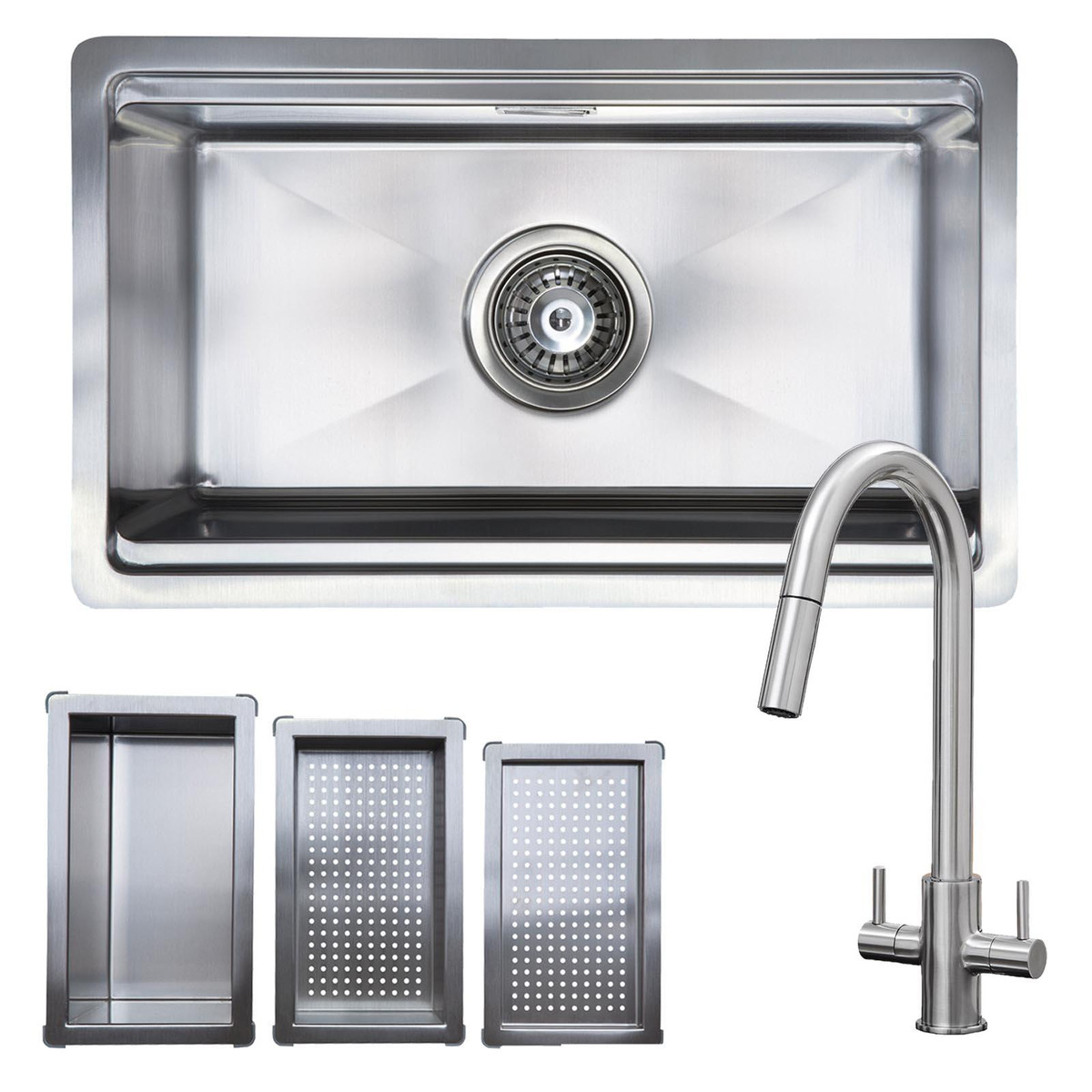 The SIA COMP10SS is a 1.0 bowl stainless steel companion sink that elegantly combines functionality with a stylish design. Perfectly placed next to a main kitchen sink or in a utlity room, this sink provides a space to wash and drain fresh produce or chill your favourite drinks. This sink comes with a shallow drainer tray, a deep colander basket and an ice bucket that all rest the sink's grooves, making it a versatile addition to any household. Here at SIA we believe in providing high quality products at budget friendly prices and this sink is no exception. The sink is complemented by the KT4BN, a pull-out spray twin lever mixer tap with a brushed nickel finish that will add a modern look to any kitchen.