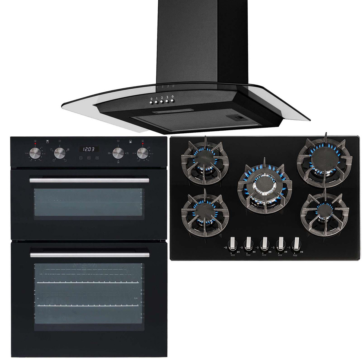 The SIA DO102-R8-CGH70BL is a stylish yet functional, built-in double oven, gas hob & curved glass cooker hood. With a modern black glass front and stainless steel accessories it will blend in with any kitchens décor and add a modern twist to your kitchen. This 70cm 5 burner gas hob equips you with fantastic features to make your cooking experience fun and above all, safe.With 3-speed settings, a removable grease filter and a LED downlight this simplistic hood is perfect for any kitchen.