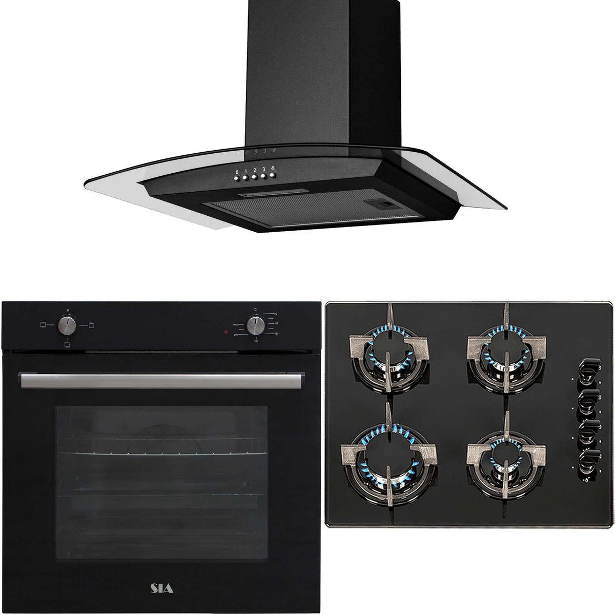 The SSO10BL-GHG602BL-CGH60BL pack from SIA is a stylish yet functional, built-in single oven, 4 burner gas on glass hob and curved glass cooker hood. The simple dial controls make using the appliances a piece of cake and the built-in oven can be mounted under a worktop or at eye level, so it can match any kitchen style. The cooker hood is small yet powerful helping you keep your kitchen clean and fresh and has a simplistic design that will fit in with your kitchens décor. These appliances have been chosen to complement each others design and fit into any modern kitchen.