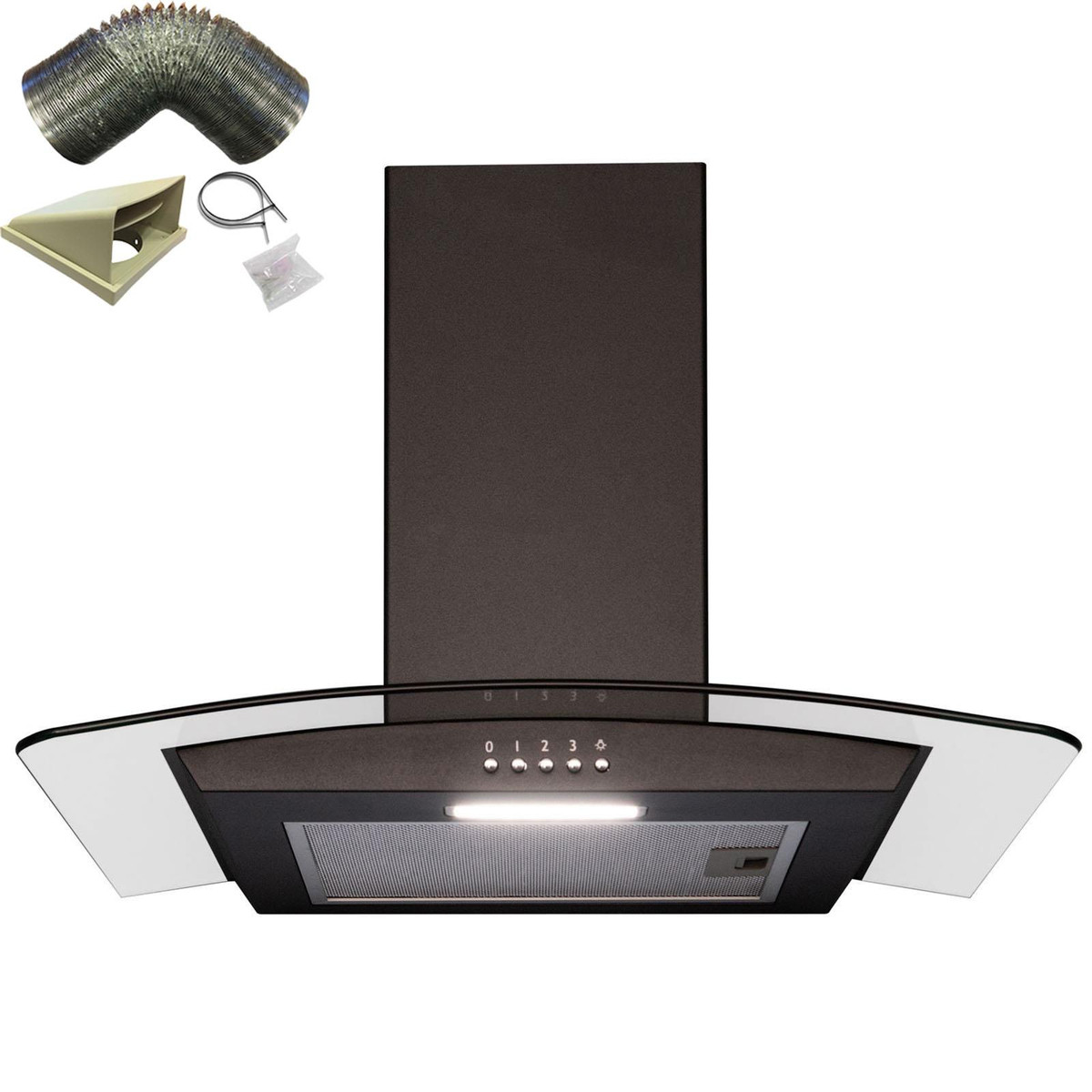 This 60cm black, curved glass cooker hood will fit into any contemporary kitchen. It features 3 speeds to suit any cooking and a handy LED downlight to help illuminate your stove. Being un-branded means it can mix and match with any other appliances, making this perfect for any kitchen!