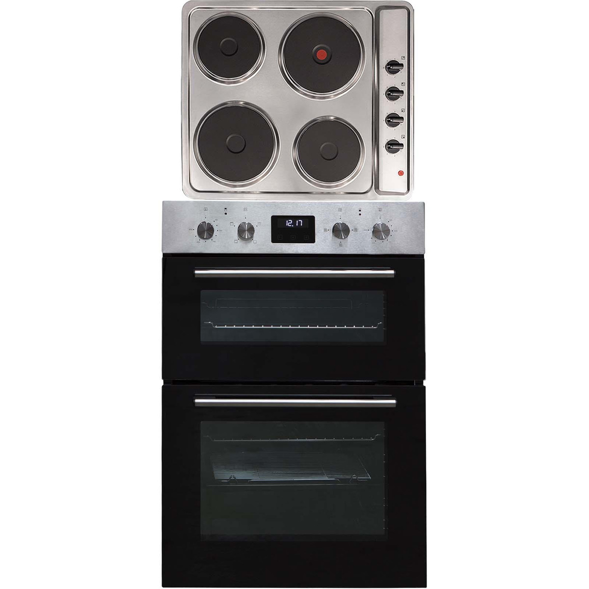 The SIA DO112SS-PHP601SS is a stylish yet functional, built-in double oven and 4 zone plate electric hob. The oven has a modern black glass front and stainless steel trim it will blend in with any kitchens décor. The bottom oven features a fanned circular heater which provides quick and efficient cooking and the top oven can be used as a convection oven or grill, providing a use for any type of dish!