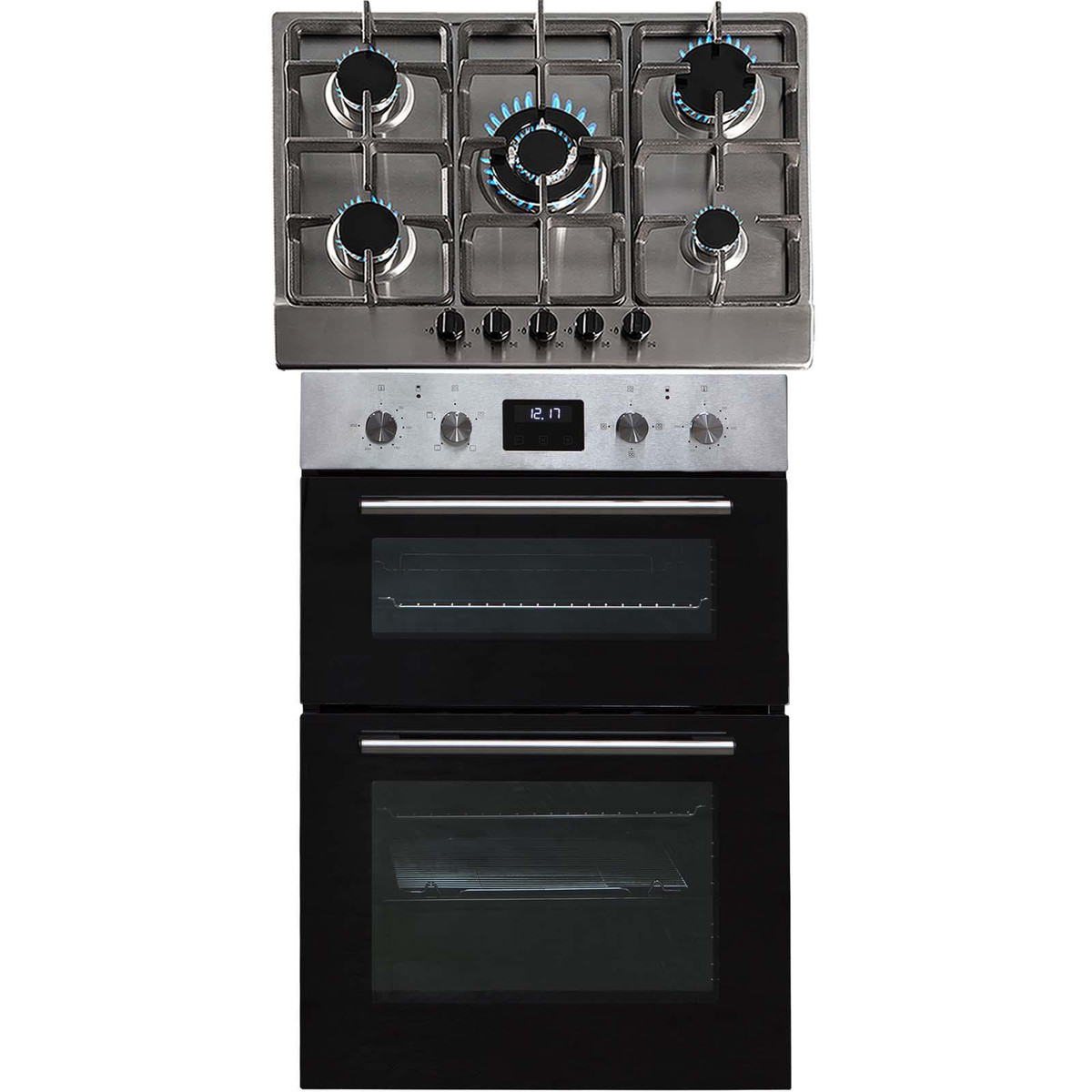 The SIA DO112SS-SSG701SS is a stylish yet functional, built-in double oven and 5 burner gas hob. The oven has a modern black glass front and stainless steel trim it will blend in with any kitchens décor. The bottom oven features a fanned circular heater which provides quick and efficient cooking and the top oven can be used as a convection oven or grill, providing a use for any type of dish!
