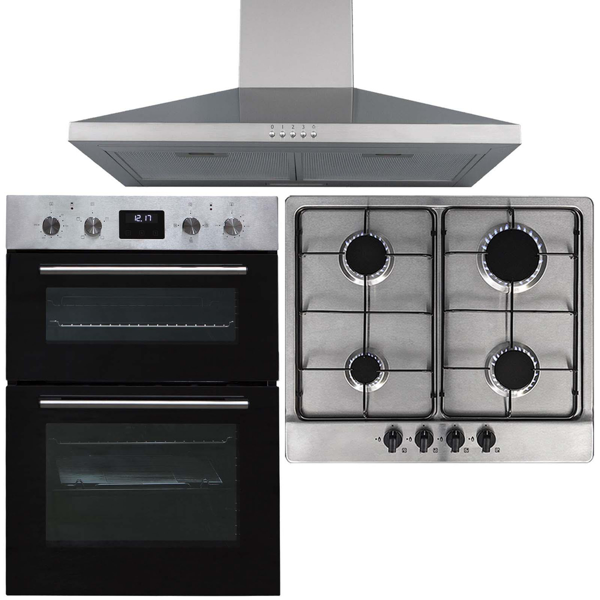 The SIA DO112SS-SSG602SS-CHL60SS is a stylish yet functional, built-in double oven, 4 burner gas hob and pyramid chimney cooker hood. The oven has a modern black glass front and stainless steel trim it will blend in with any kitchens décor. The bottom oven features a fanned circular heater which provides quick and efficient cooking and the top oven can be used as a convection oven or grill, providing a use for any type of dish!