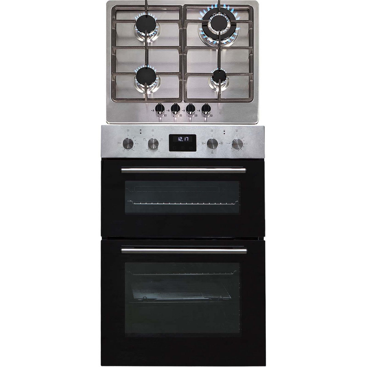 The SIA DO112SS-SSG601SS is a stylish yet functional, built-in double oven and 4 burner gas hob. The oven has a modern black glass front and stainless steel trim it will blend in with any kitchens décor. The bottom oven features a fanned circular heater which provides quick and efficient cooking and the top oven can be used as a convection oven or grill, providing a use for any type of dish!