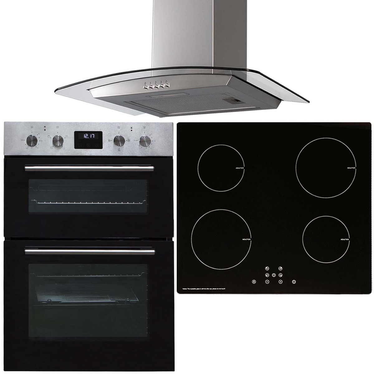 The SIA DO112SS-INDH61BL-CGH60SS is a stylish yet functional, built-in double oven, 13 amp induction hob and curved glass cooker hood. The oven has a modern black glass front and stainless steel trim it will blend in with any kitchens décor. The bottom oven features a fanned circular heater which provides quick and efficient cooking and the top oven can be used as a convection oven or grill, providing a use for any type of dish!