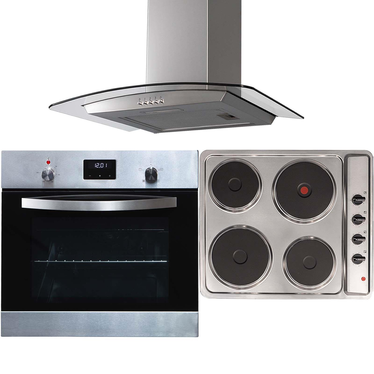 The SO114SS-PHP601SS-CGH60SS package contains a stainless steel single electric oven, 4 zone solid plate hob and curved cooker hood. This set is packed with features and style, that is sure to revitalise any kitchen!