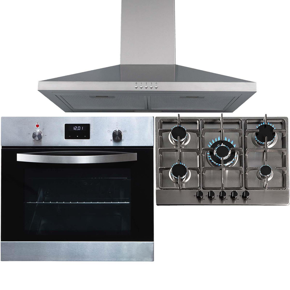 The SO114SS-SSG702SS-CHL70SS package contains a stainless steel single electric oven, 5 gas burner hob and cooker hood. This set is packed with features and style, that is sure to revitalise any kitchen!