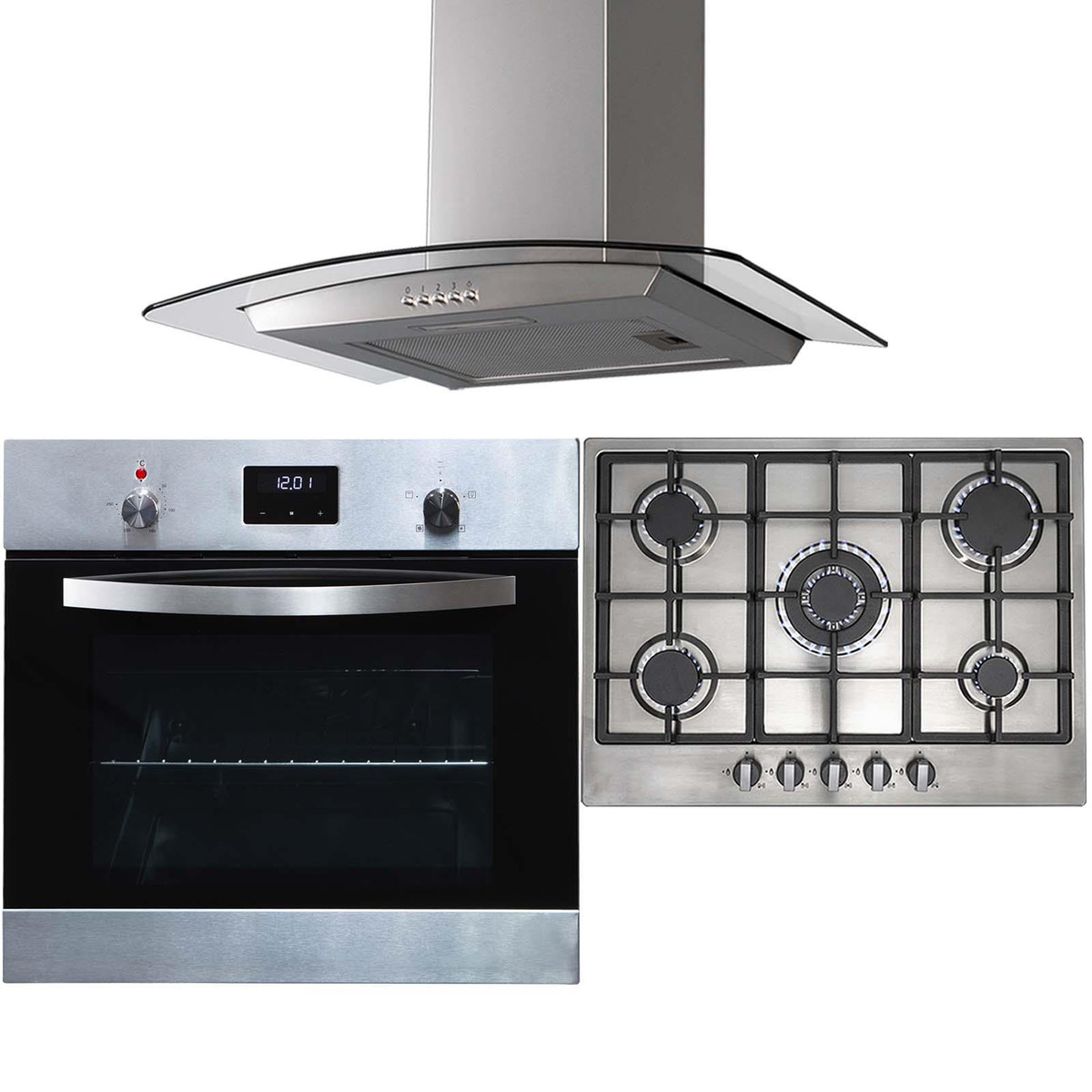 The SO114SS-R6-CGH70SS package contains a stainless steel single electric oven , 70cm 5 burner gas hob and curved cooker hood. This set is packed with features and style, that is sure to revitalise any kitchen!