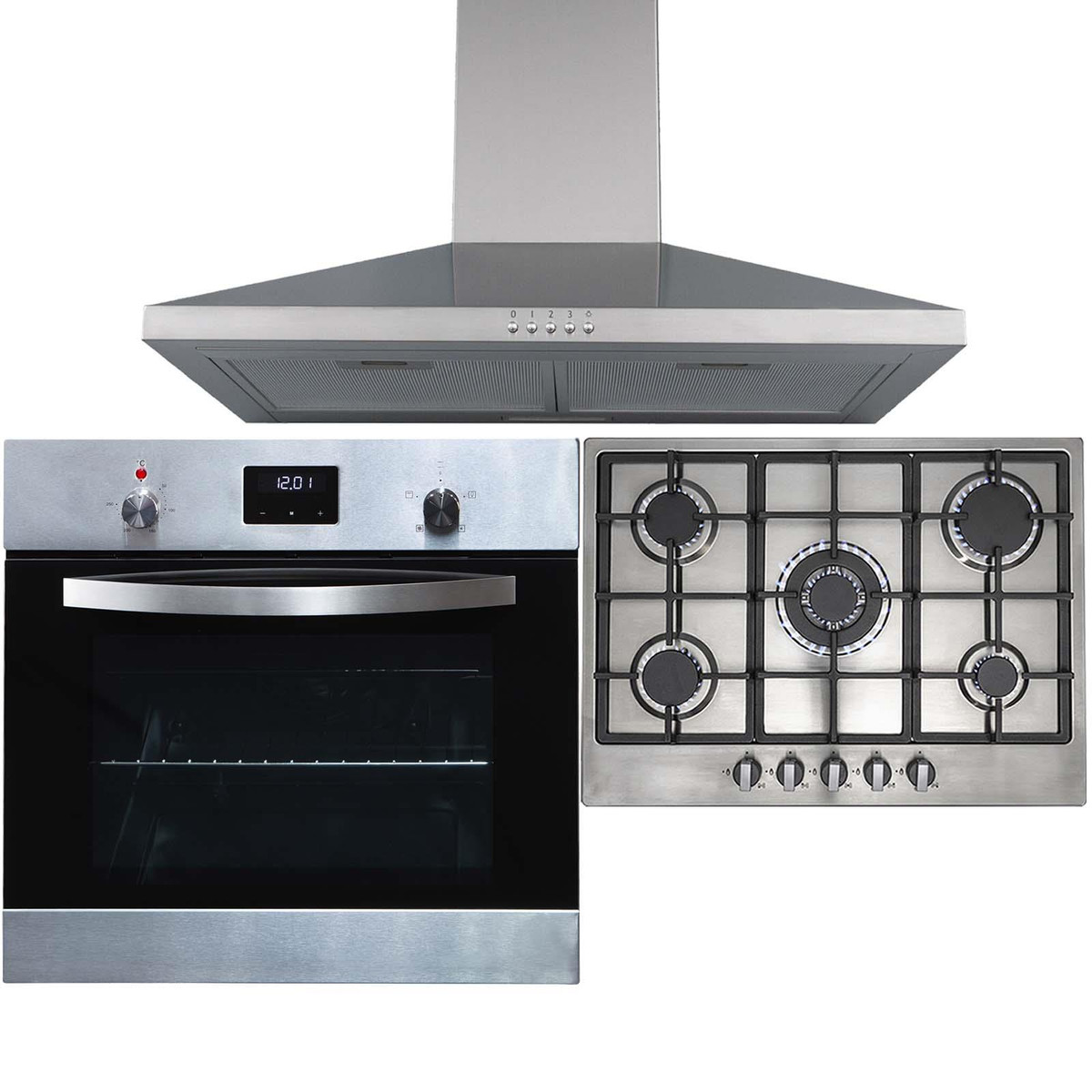The SO114SS-R6-CHL70SS package contains a stainless steel single electric oven , 70cm 5 burner gas hob and cooker hood. This set is packed with features and style, that is sure to revitalise any kitchen!