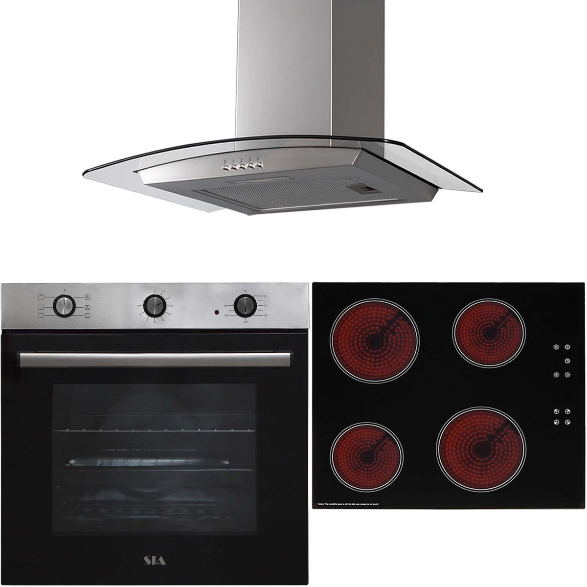 The FSO10SS-CERH60BL-CGH60SS pack from SIA is a stylish yet functional, built-in single oven, 4 zone electric ceramic hob and curved glass cooker hood. The simple dial controls make using the oven a piece of cake and it can be mounted under a worktop or at eye level, so it can match any kitchen style. These appliances have been chosen to complement each others design and fit into any modern kitchen.