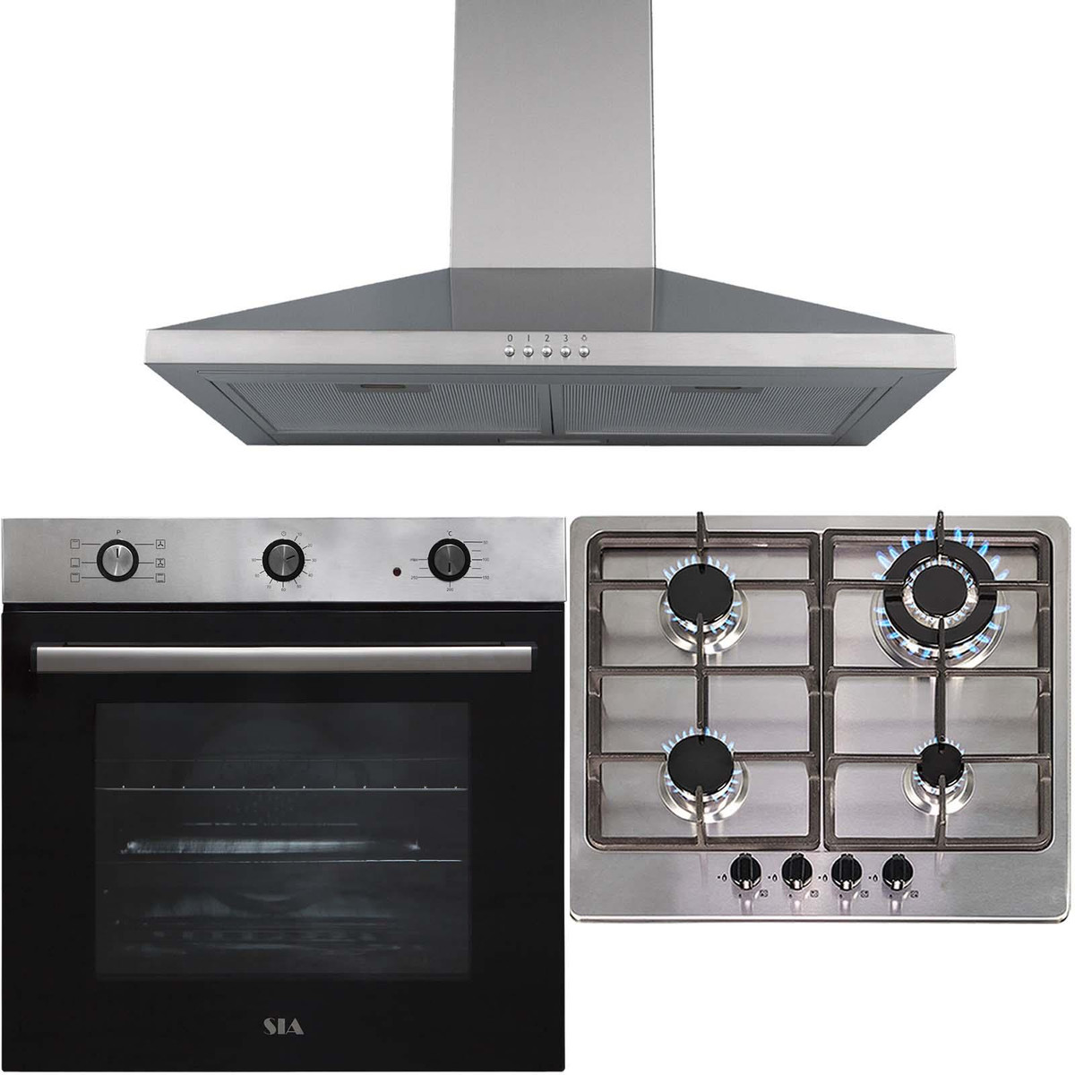 The FSO10SS-SSG601SS-CHL60SS pack from SIA is a stylish yet functional, built-in single oven, 4 burner gas hob and chimney cooker hood. The simple dial controls make using the appliances a piece of cake and the built-in oven can be mounted under a worktop or at eye level, so it can match any kitchen style. These appliances have been chosen to complement each others design and fit into any modern kitchen.