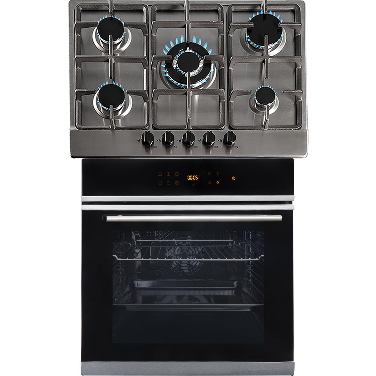 The BISO6SS-SSG701SS pack is a stylish yet functional, built-in 10 function single oven and matching stainless steel gas hob. With a modern black glass front and stainless-steel accessories, the BISO6SS will blend in with any kitchen’s décor. The SSG701SS is a 70cm, 5 burner gas hob with built-in safety features and an elegant design.