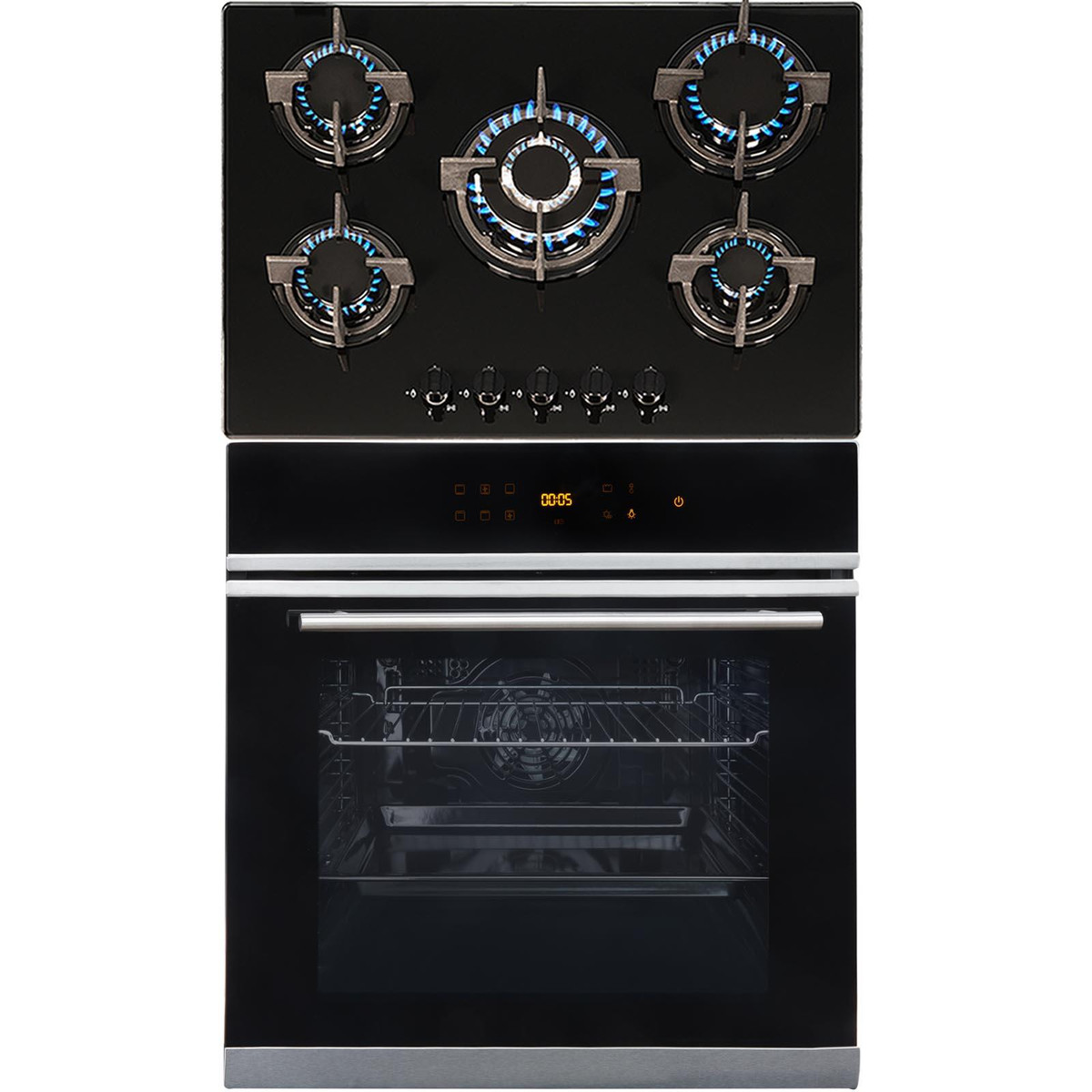 The BISO6SS-GHG703BL pack is a stylish yet functional, built-in 10 function single oven and matching gas on glass hob. With a modern black glass front and stainless-steel accessories, the BISO6SS will blend in with any kitchen’s décor. The GHG703BL is a 70cm, 5 burner black glass hob with built-in safety features and an elegant design. The stunning black safety glass is not only extremely durable and tough but also adds a modern look to any kitchen.