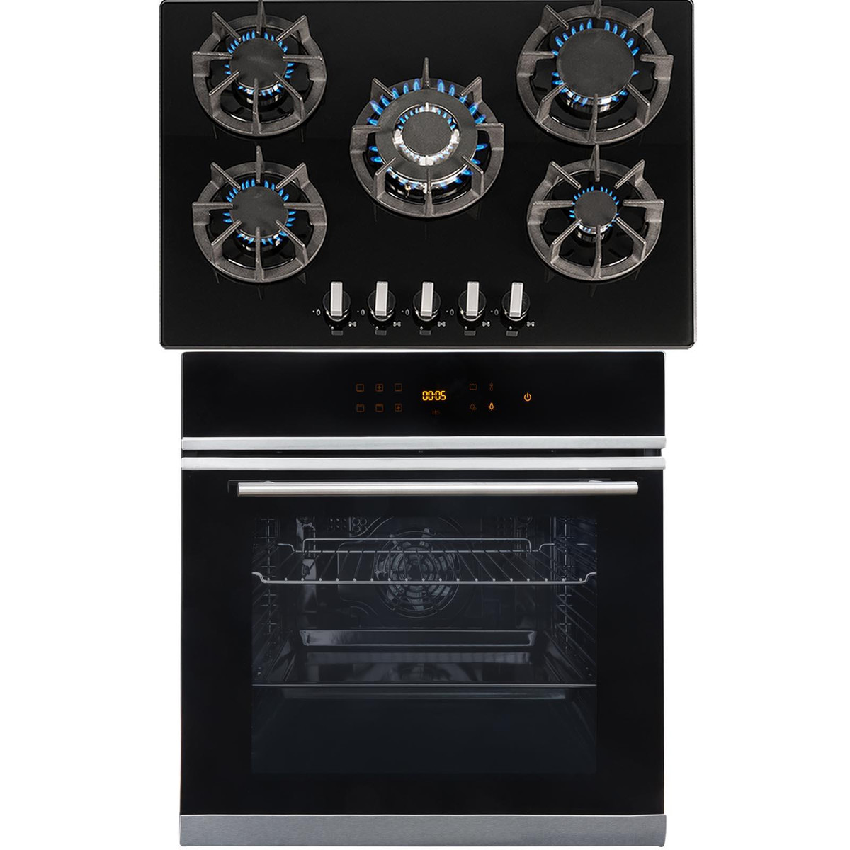 The BISO6SS-R8 pack is a stylish yet functional, built-in 10 function single oven and matching gas on glass hob. With a modern black glass front and stainless-steel accessories, the BISO6SS will blend in with any kitchen’s décor. The R8 is a 70cm, 5 burner black glass hob with built-in safety features and an elegant design. The stunning black safety glass is not only extremely durable and tough but also adds a modern look to any kitchen.