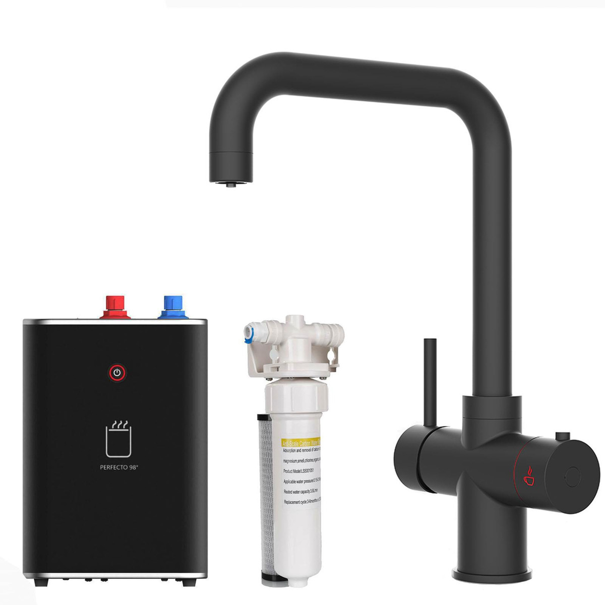 The tap comes with a nano-phosphate filter and an in-cupboard fully insulated storage tank. The filter purifies water before it gets to the tank, which removes any impurities and helps to improve the water’s taste & clarity.