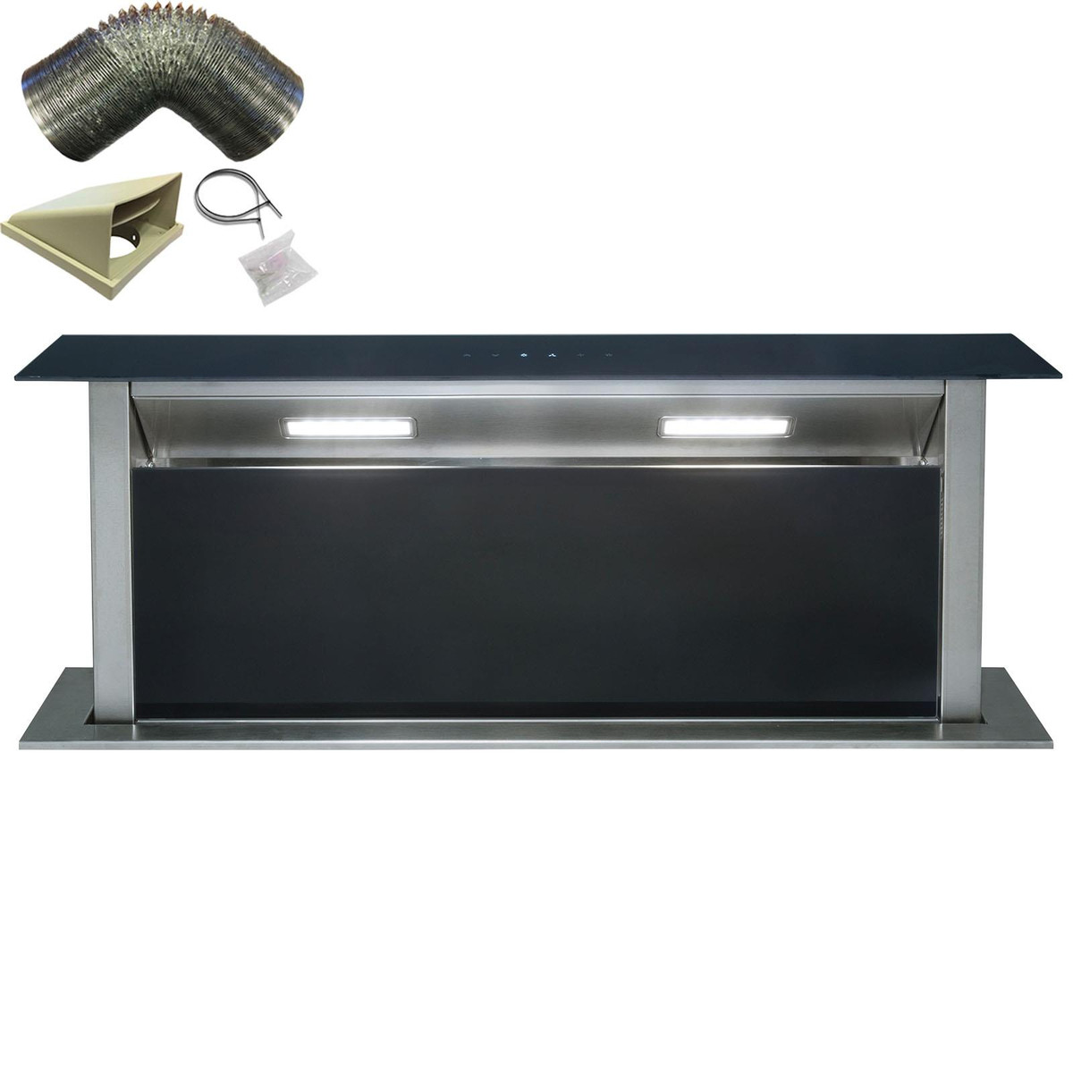 This downdraft extractor comes with the SIA D5 150mm x 1m ducting kit, so you have everything you need to set it up for external extraction. The ducting kit is used to channel odours, steam and smoke straight outside, keeping your kitchen clean and fresh. The appliance can be used for internal re-circulation however a carbon filter would need to be purchased separately.