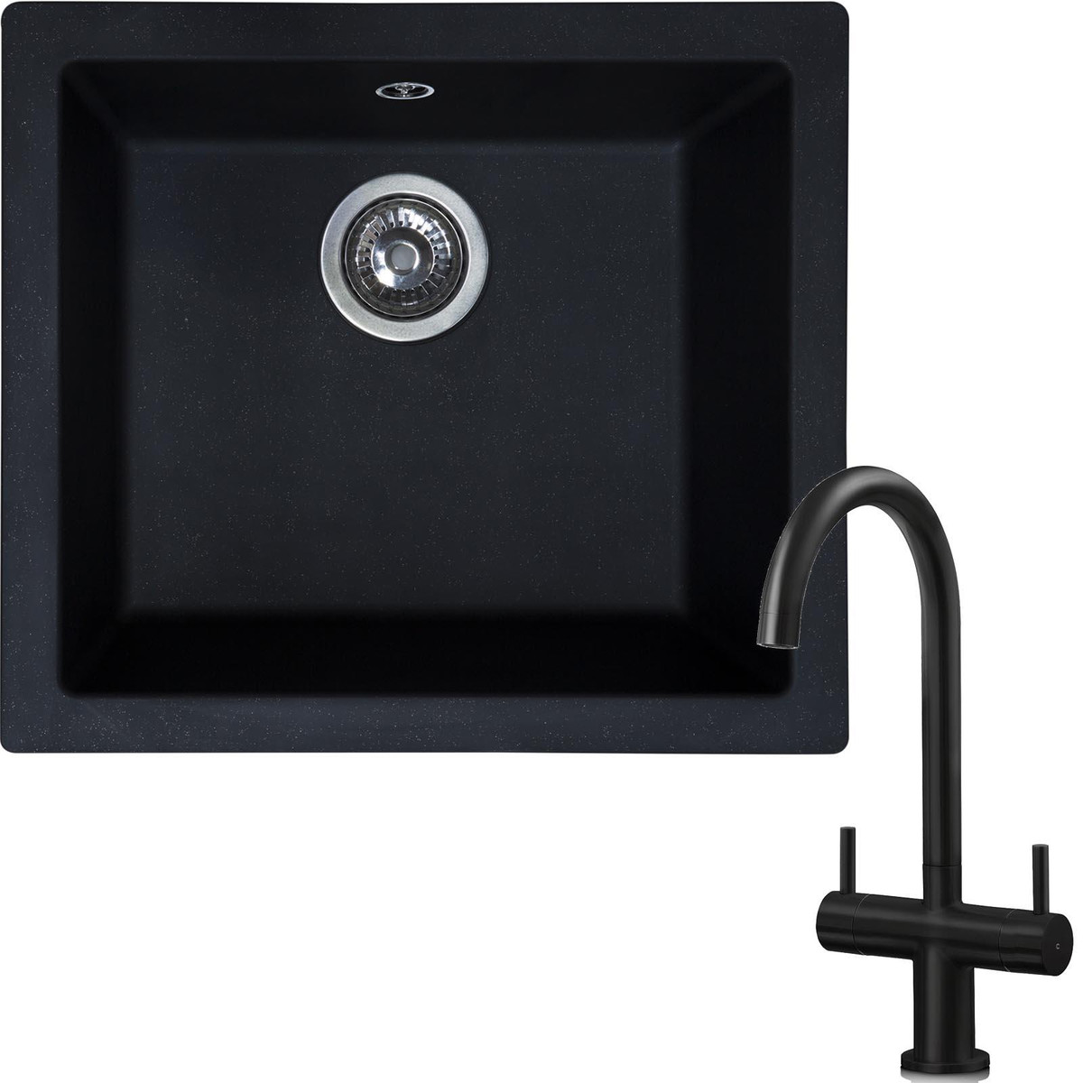 If you are looking for a durable, hard-wearing sink without the expensive price tag then the EVOBL is the product for you. Manufactured from a strong fibreglass composite this sink is resistant to heat, stains and scratches, making it the perfect choice for any household. The sink is suitable for both inset and undermount installation so it will fit in with any kitchen layout and the striking black colour contains a shiny fleck that gives the sink a stylish shimmer! This package includes the KT3BL, a twin lever mixer tap with a stylish black finish that complements the sink perfectly.
