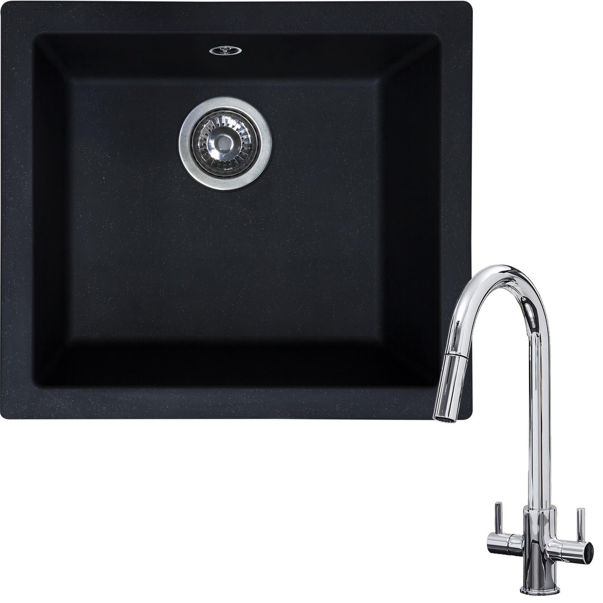 If you are looking for a durable, hard-wearing sink without the expensive price tag then the EVOBL is the product for you. Manufactured from a strong fibreglass composite this sink is resistant to heat, stains and scratches, making it the perfect choice for any household. The sink is suitable for both inset and undermount installation so it will fit in with any kitchen layout and the striking black colour contains a shiny fleck that gives the sink a stylish shimmer! The sink is complemented by the KT4CH, a pull-out spray twin lever mixer tap with a chrome finish that will add a modern look to any kitchen.