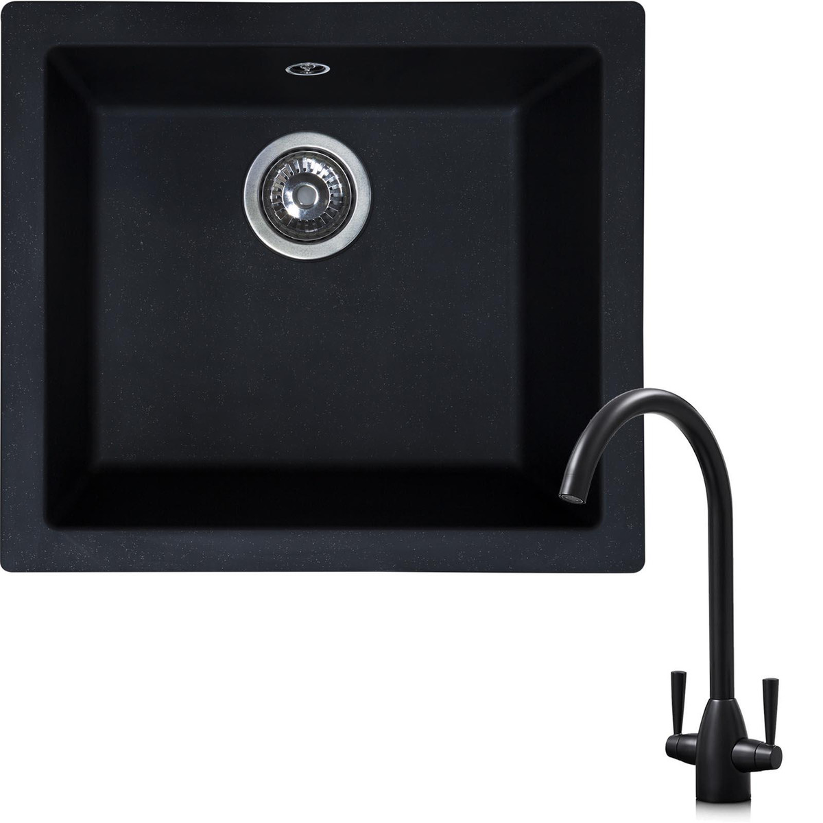 SIA EVOBL 1.0 Bowl Black Composite Inset / Undermount Kitchen Sink And Waste Kit
