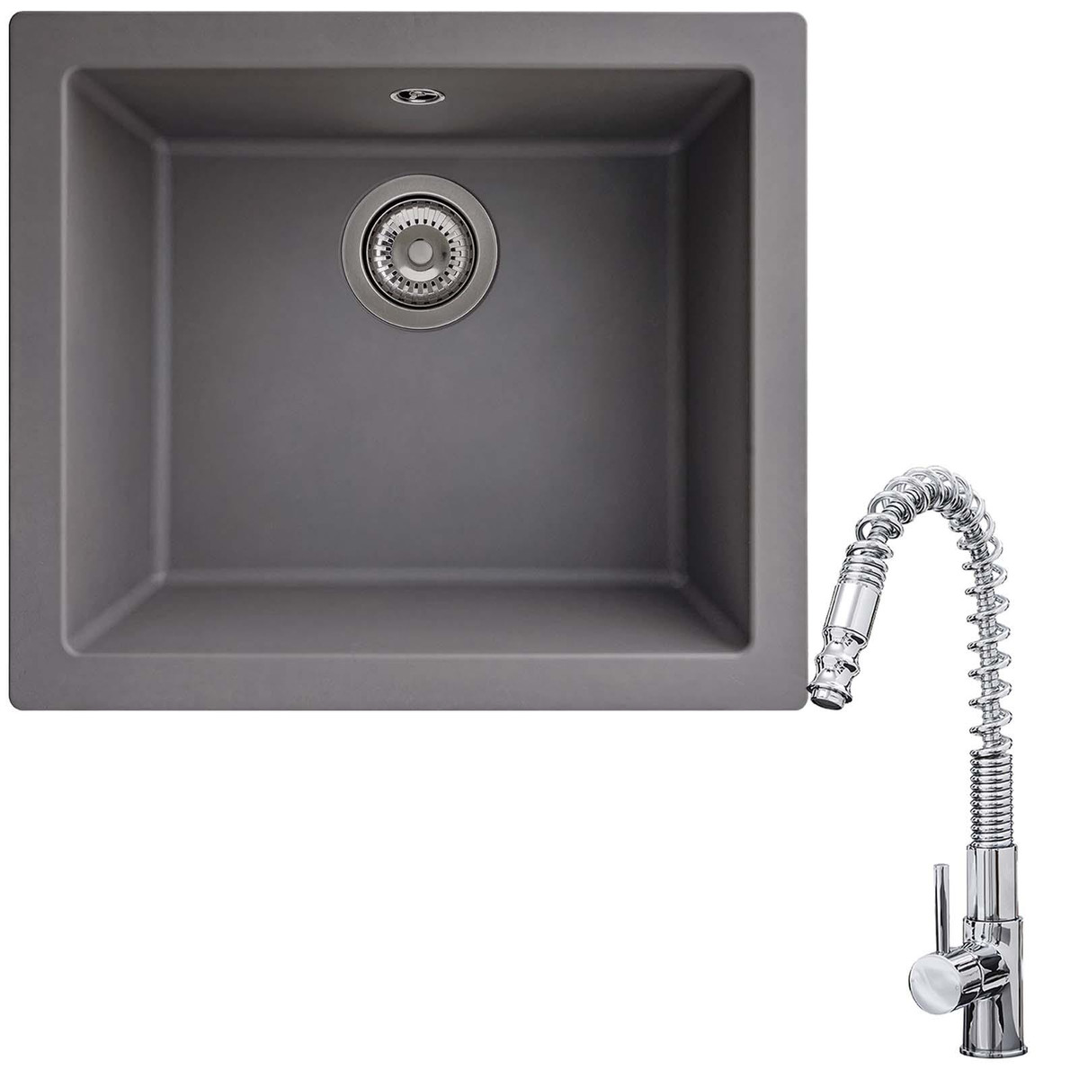 SIA EVOGR 1.0 Bowl Grey Composite Inset / Undermount Kitchen Sink And Waste Kit