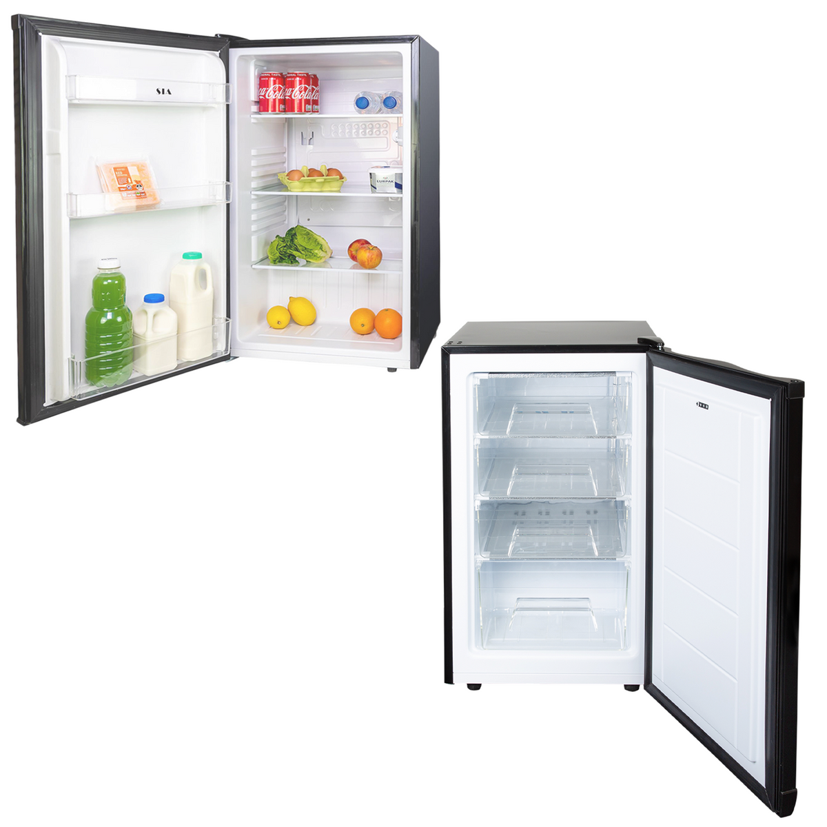 This superb LFS01BL-UCF50BL freestanding larder fridge and freezer pack from SIA is sure to equip you with all the space you need to stock your favourite everyday items. With a combined capacity of 170 litres, both models are perfect for any sized kitchen and are designed to fit nicely underneath a counter or in any room in your house without compromising storage space.