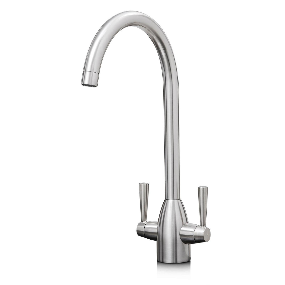 The SIA KT5BN is a swan neck kitchen mixer tap with a contemporary look that will add a touch of style to any kitchen. The stylish brushed nickel finish gives the tap a sleek modern look, allowing it to match perfectly with any type of sink. The two quarter turn levers allow for precise water flow and the swivel spout means it is perfect for sinks with multiple bowls.