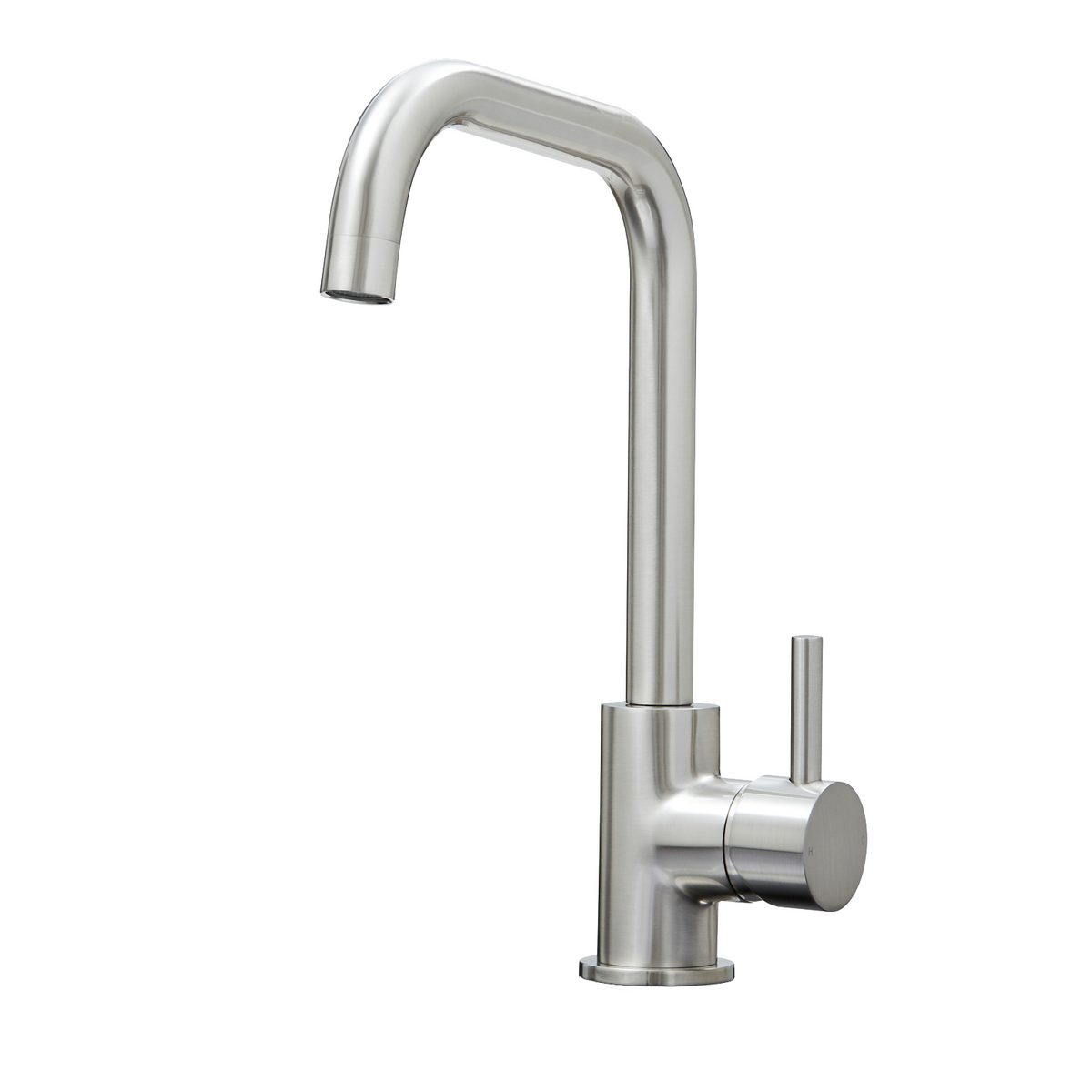 The SIA KT6BND is a U-shaped kitchen mixer tap with a contemporary look that will add a touch of style to any kitchen. The stunning brushed nickel finish beautifully complements stainless steel sinks but also offers a daring contrast with other sinks. Try pairing this tap with a black composite sink to create a phenomenal focal point in your kitchen! The quarter turn lever allows for precise water flow and the swivel spout means it is perfect for sinks with multiple bowls.
