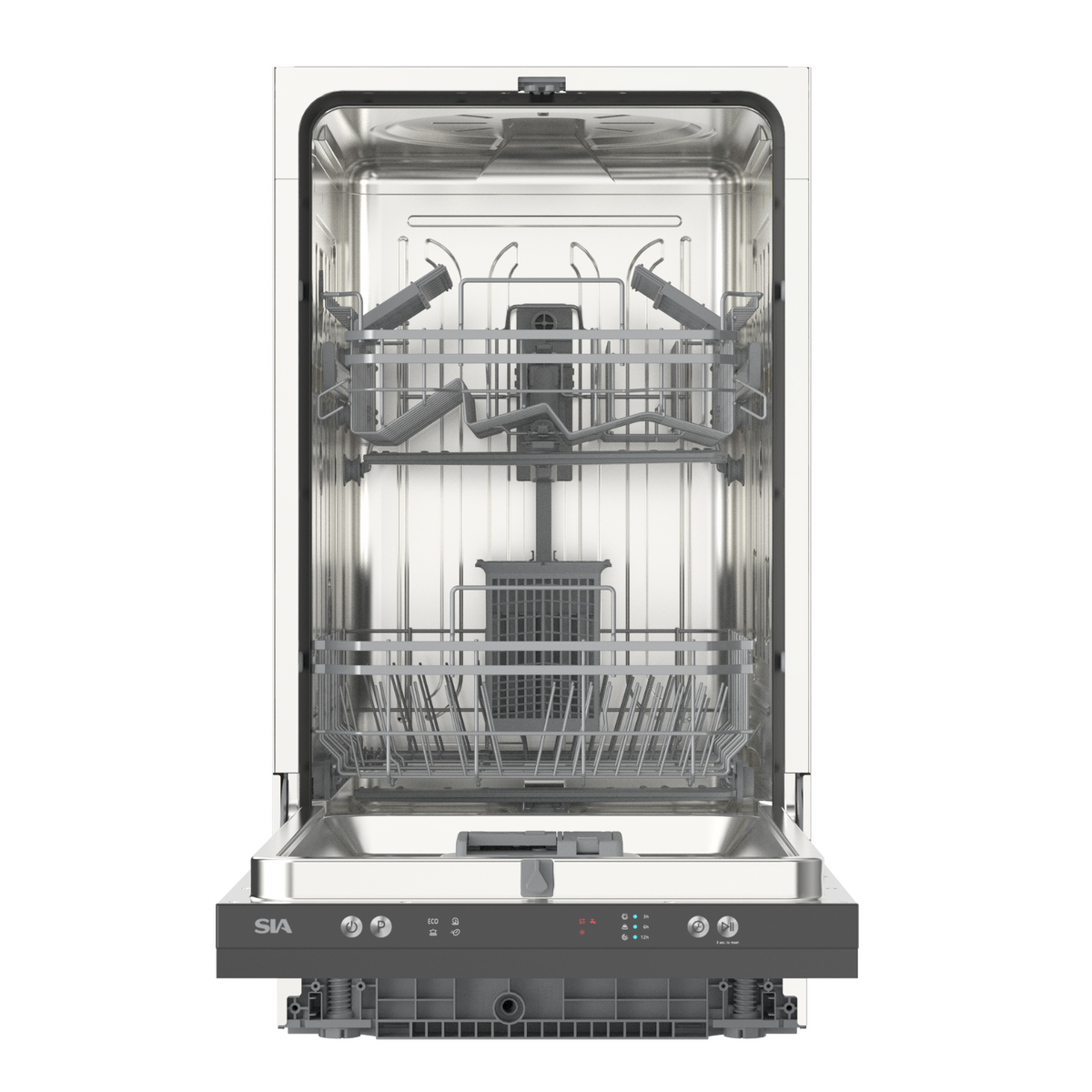 The SIA SBID459 45cm Slimline Integrated Dishwasher is the perfect space-saving solution for modern kitchens. Despite its compact size, it offers generous capacity with 9 place settings, ideal for couples and small families. Choose from 4 versatile wash programs: Eco, Intensive, Daily, and Quick, to suit any cleaning need. The handy delay timer (3, 6, 9, or 12 hours) lets you wash when it’s most convenient. Built with safety in mind, it features water leakage protection and an anti-overflow system. An advanced inverter pump ensures quiet, efficient performance, making this dishwasher a smart and stylish addition to any home. Designed to be installed behind a cupboard door, this appliance will blend in seamlessly with the rest of your kitchen.
