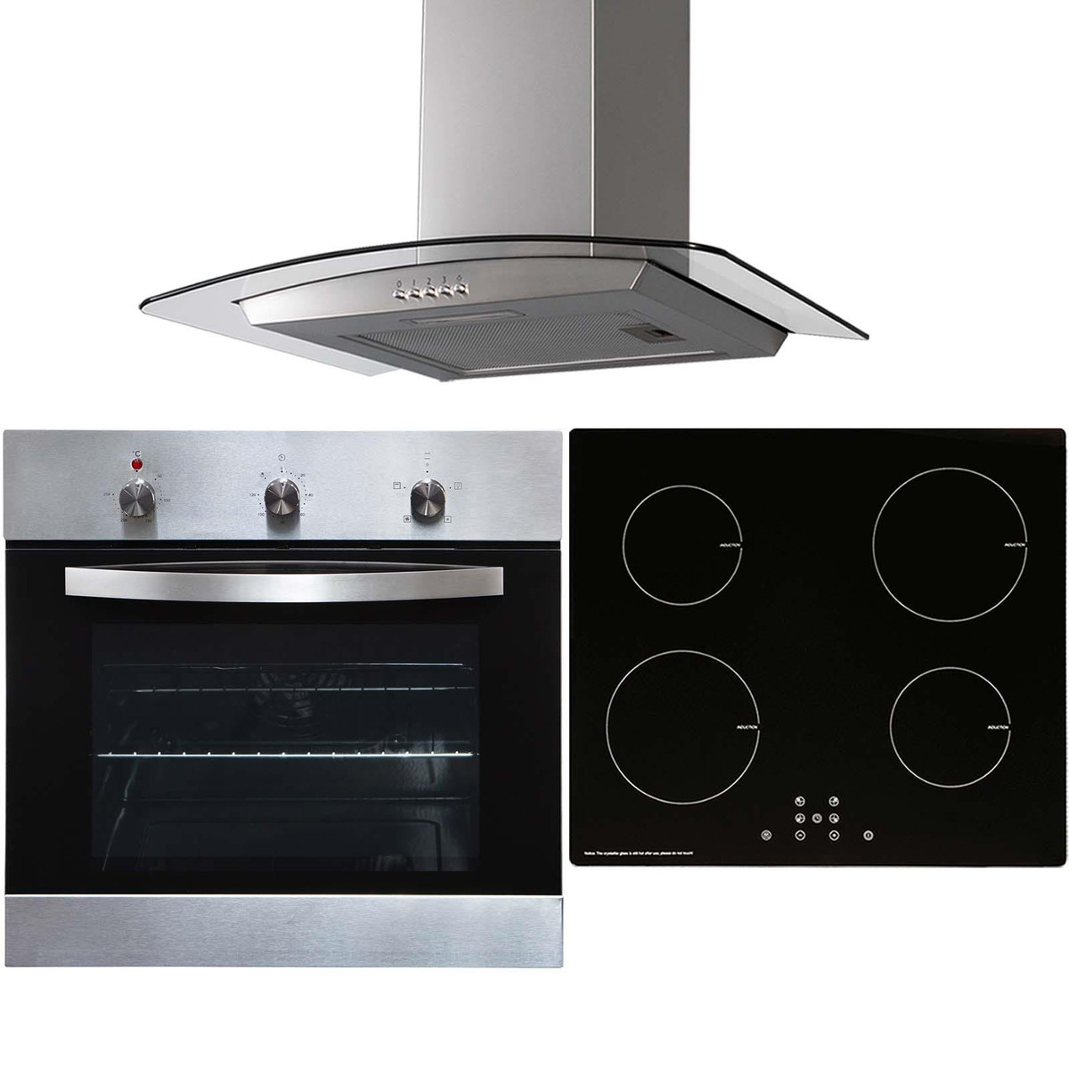 The SIA SO113SS-INDH60BL-CGH60SS is a stylish yet functional, built-in single oven, 4 zone induction hob and curved glass cooker hood. With a modern black glass front and stainless steel accessories it will blend in with any kitchen’s décor. Designed to meet your every need, this single oven is sure to make your cooking experience far more enjoyable, by ensuring a fuss-free operation of its functions.
