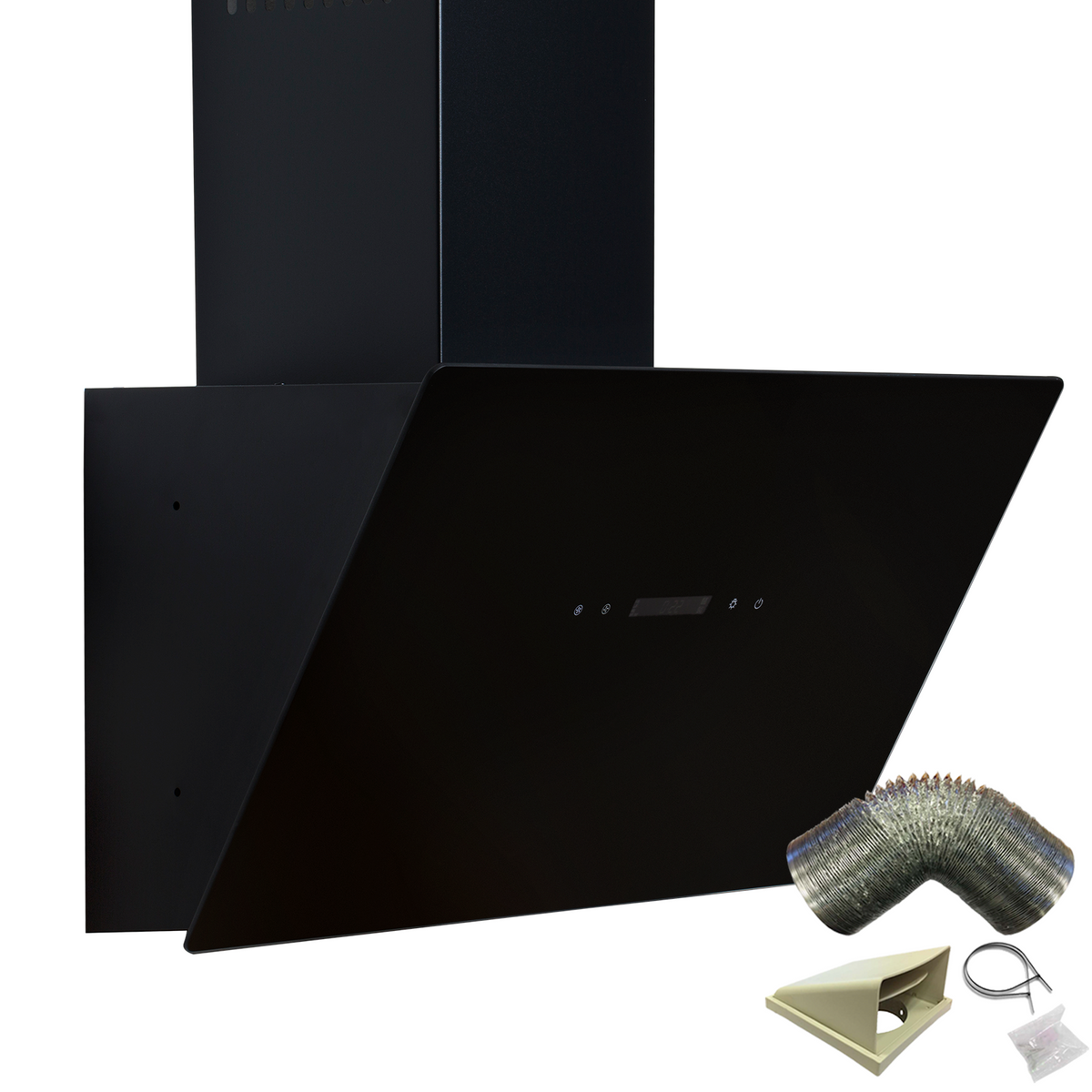 The TAG60BL is a modern touch control cooker hood with a stylish black glass finish that will fit in with any kitchens décor. 3 separate speed settings are included to match any level of cooking and the 2 x 1W LED downlights help illuminate your cooking zone. This appliance comes with an easy-to-use touch control display and 2 washable grease filters to help you keep your kitchen grease free. Angled cooker hoods are the perfect choice for those with little headroom. The sloped design and shallower depth mean they do not protrude from the wall as much as other cooker hoods.