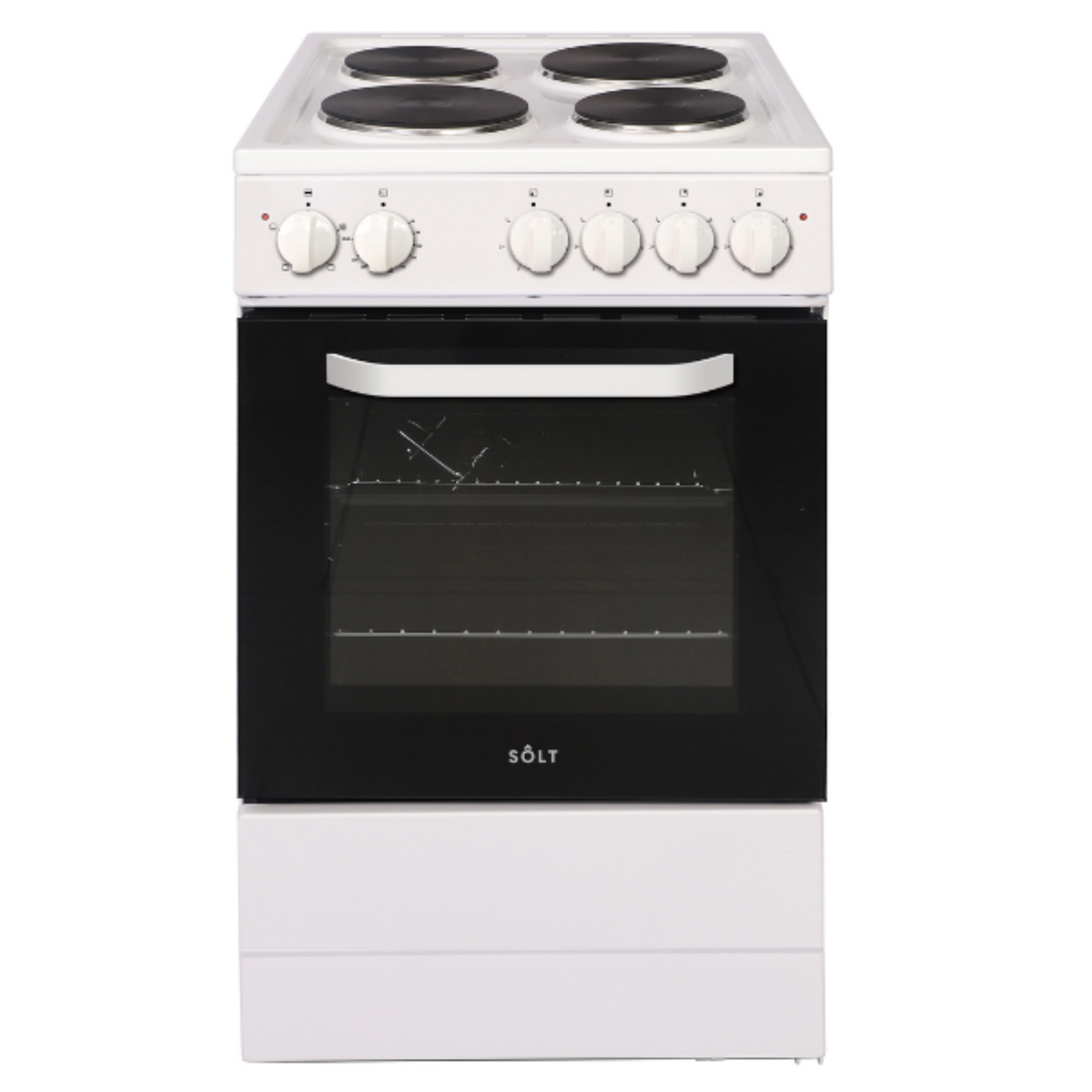 Introducing the Solt ASCC50W Freestanding Single Cavity Electric Cooker, a versatile and compact cooking solution with a clean white finish. This 50cm wide cooker offers reliable everyday performance, with a spacious oven and integrated grill to suit all your cooking needs.
