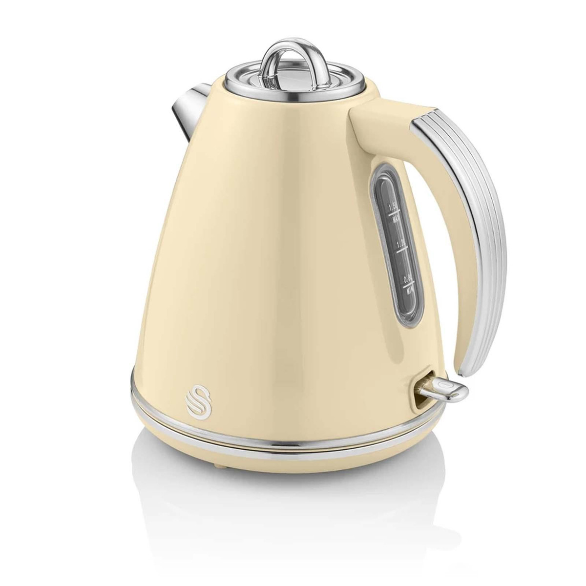 The Swan SK19020CN is a 1.5L kettle with a 1950's Retro-style design and a stylish cream finish that makes it stand out from the crowd. Constructed from durable stainless steel, this 3kW cordless kettle has an easy pouring spout and 360 degree rotating base for ease of use.