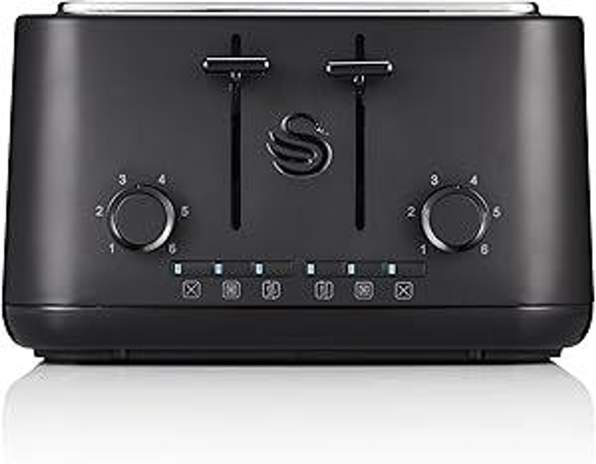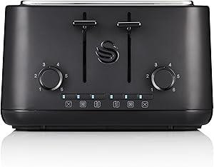 The Swan Stealth 4 Slice Toaster Black lets you enjoy ultimate control over your breakfast with impressive browning options and adjustable cooking times that allow you to perfect your toast just the way you like it. The 4-slice capacity is ideal for couples, larger households, or even office spaces, while the independent controls on each side offer flexibility to toast different items simultaneously to your exact preferences. The removable crumb tray makes cleaning up a breeze, keeping your countertop spotless. Plus, the wide slots and self-centering guides ensure even browning for any bread type, from thick bagels to fluffy crumpets.