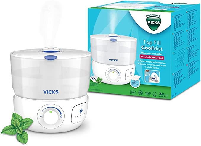 Dual vapopad technoology: 2 VapoPads with scented essential oils can be inserted for extra comfort and soothing vapours. Includes 2 menthol VapoPads. The Top Fill humidifier also has a new inhalant cup feature, simply add a few drops of your favourite essential oil to enjoy a relaxing atmosphere.