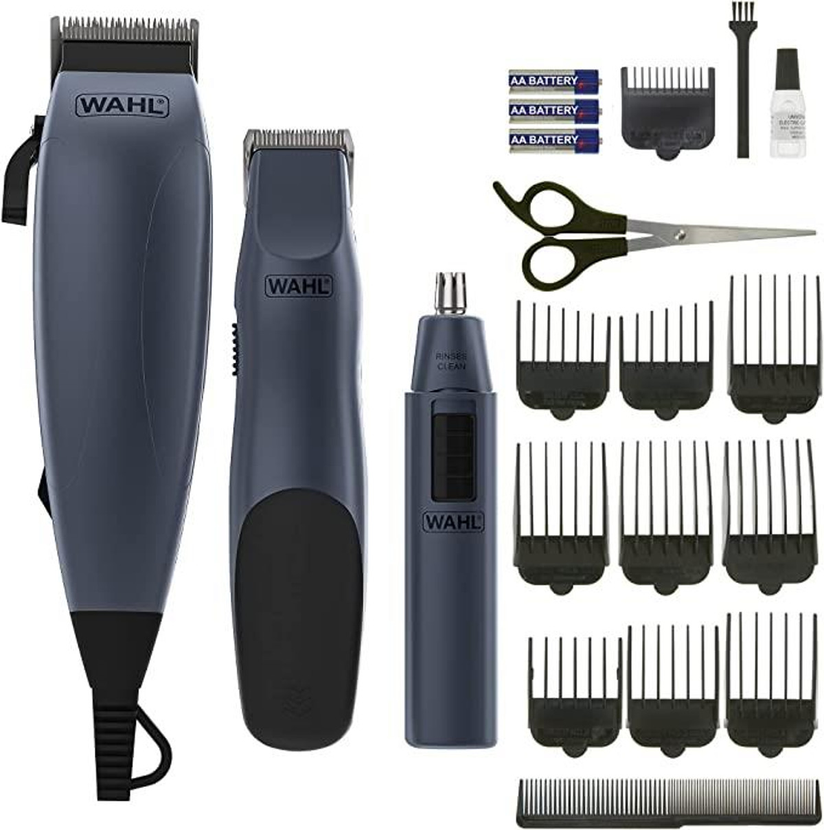 The Wahl Clipper Grooming Gift Set 79305-2817is a versatile 12-piece hair trimming kit that operates using a power cord. It features a thumb taper lever that can be adjusted to control the cutting depth, along with four attachment combs. This allows you to achieve various cutting lengths ranging from 0.8mm to 13mm, enabling you to create your desired hairstyle. The precision ground blades, made of high carbon steel, only require occasional oiling (included) to maintain their smooth cutting performance. Additionally, the set includes a pair of scissors, a barber's comb, clipper oil, a blade cleaning brush, and a soft pouch for convenient storage.