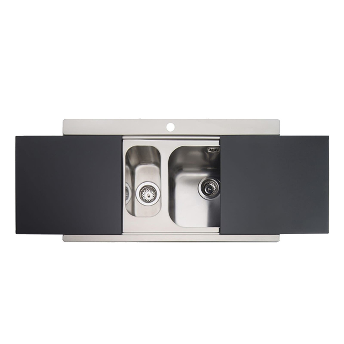 The innovative Clearwater Mirage range of sinks feature glass chopping boards that hide the sink away whilst not in use, making this sink perfect for integrated and minimalistic kitchens. When you wish to use the sink, simply slide the glass boards across and enjoy an increased space to prepare your food. These sinks are highly practical and are the more affordable version of the Clearwater Glacier range. This sink features a large main bowl for your usual cleaning needs and a smaller half bowl that is perfect for other uses, including preparing fresh produce.