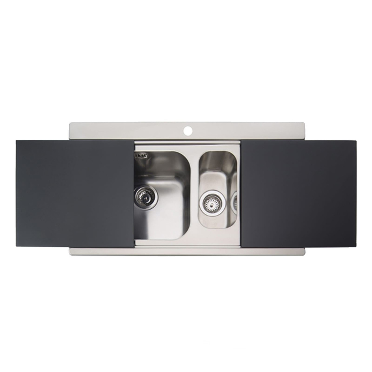 The innovative Clearwater Mirage range of sinks feature glass chopping boards that hide the sink away whilst not in use, making this sink perfect for integrated and minimalistic kitchens. When you wish to use the sink, simply slide the glass boards across and enjoy an increased space to prepare your food. These sinks are highly practical and are the more affordable version of the Clearwater Glacier range. This sink features a large main bowl for your usual cleaning needs and a smaller half bowl that is perfect for other uses, including preparing fresh produce.