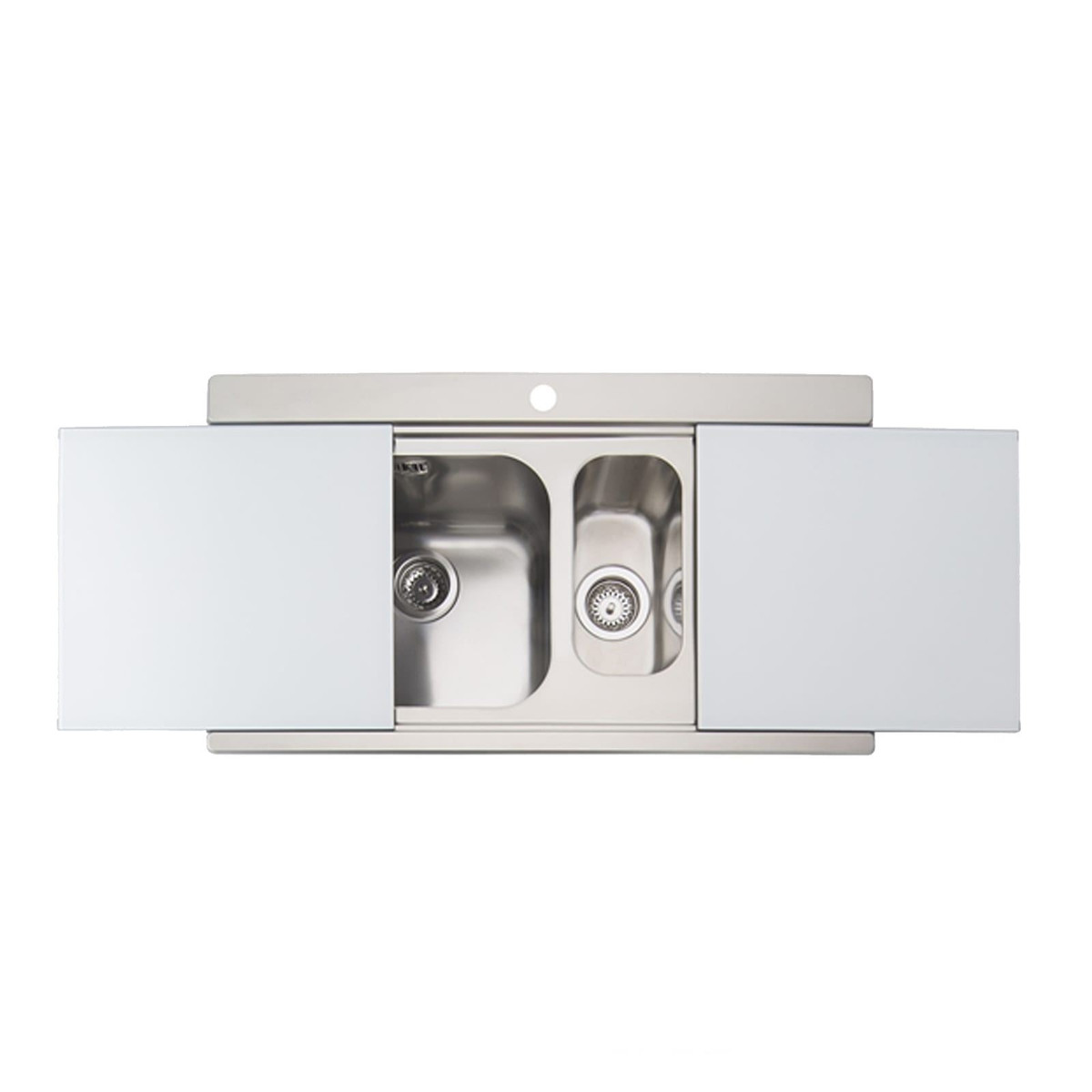 The innovative Clearwater Mirage range of sinks feature glass chopping boards that hide the sink away whilst not in use, making this sink perfect for integrated and minimalistic kitchens. When you wish to use the sink, simply slide the glass boards across and enjoy an increased space to prepare your food. These sinks are highly practical and are the more affordable version of the Clearwater Glacier range. This sink features a large main bowl for your usual cleaning needs and a smaller half bowl that is perfect for other uses, including preparing fresh produce.