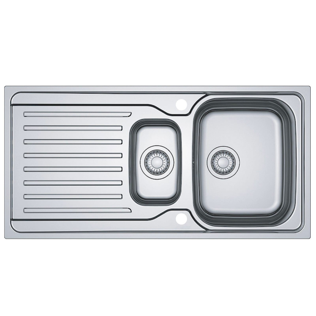 Franke offers this top-quality Antea stainless steel sink at a very affordable price. This kitchen model has a large main bowl for practicality and a smaller half bowl for convenience of performing tasks simultaneously. Top quality nickel steel has been used for its physical construction, making it resistant to stains, rust and corrosion. The reversible drainer gives you the freedom to position the sink to provide either a left or right handed drainer. Compatible with any work surface, including laminate worktops.