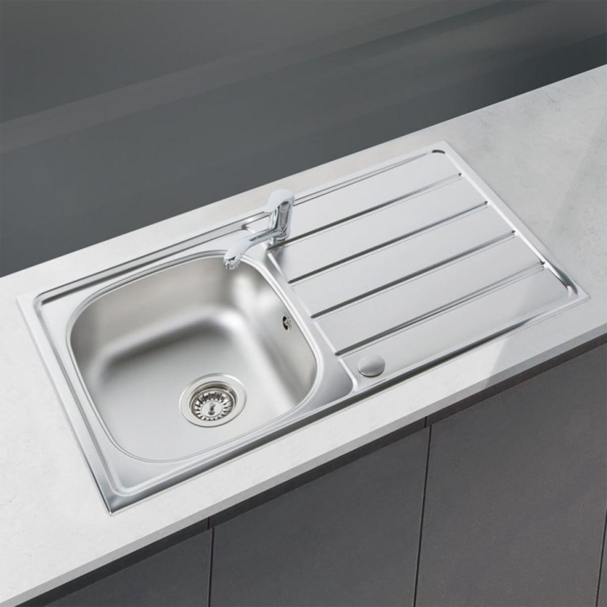The SIA BAILE10LSS is a stainless steel single bowl sink with a sizeable draining board, making it perfect for any kitchen or utility room. The large single bowl is the perfect size to do the washing up and the reversible draining board has plenty of space to store your pots for drying. Here at SIA we believe in providing high quality products at budget friendly prices and the BAILE10LSS is no exception. The sink comes with a basket strainer waste kit, overflow and fitting clips to ensure installation is quick and hassle free. Plumbing packs are also available for this sink, please see below for more details.